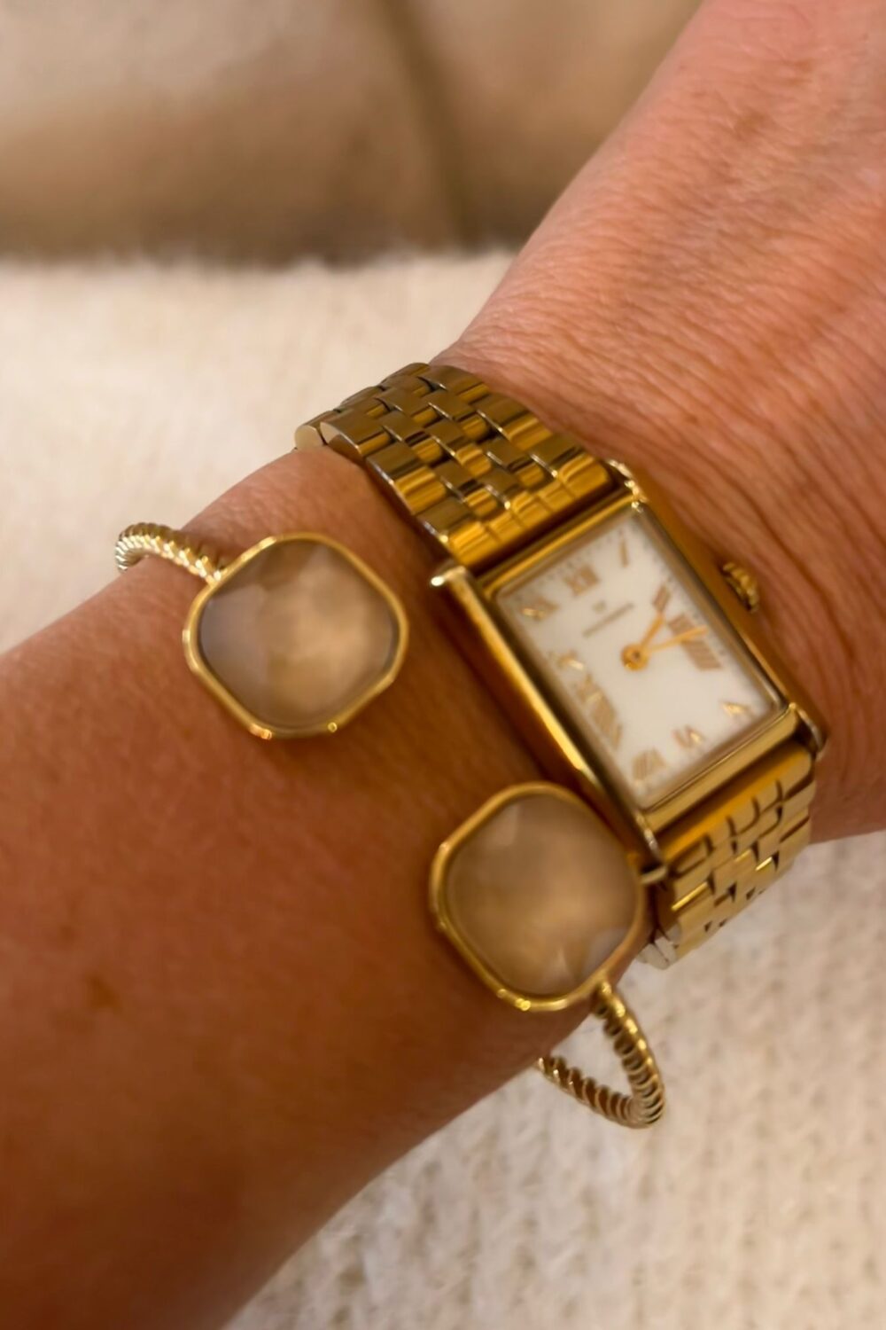 I webbshoppen finns det många vackra armband att välja mellan. Armband till dam med plätering av guld och silver. Även en enkel outfit kan bli fullständig med assessorer i form av armband. Använd ett eller kombinera flera – framhäv din personliga stil på ett naturligt sätt. Sortimentet hos Fanny Michel uppdateras ständigt med spännande nyheter. Skäm bort dig själv med ett vackert armband eller ge bort till en kvinna som förtjänar något extra fint. Variera mellan olika armband utifrån humör och tillfälle. Det är alltid tillfälle att bära ett armband runt handleden, både till vardags och fest. Välkommen att hitta dina nya favoriter redan idag.