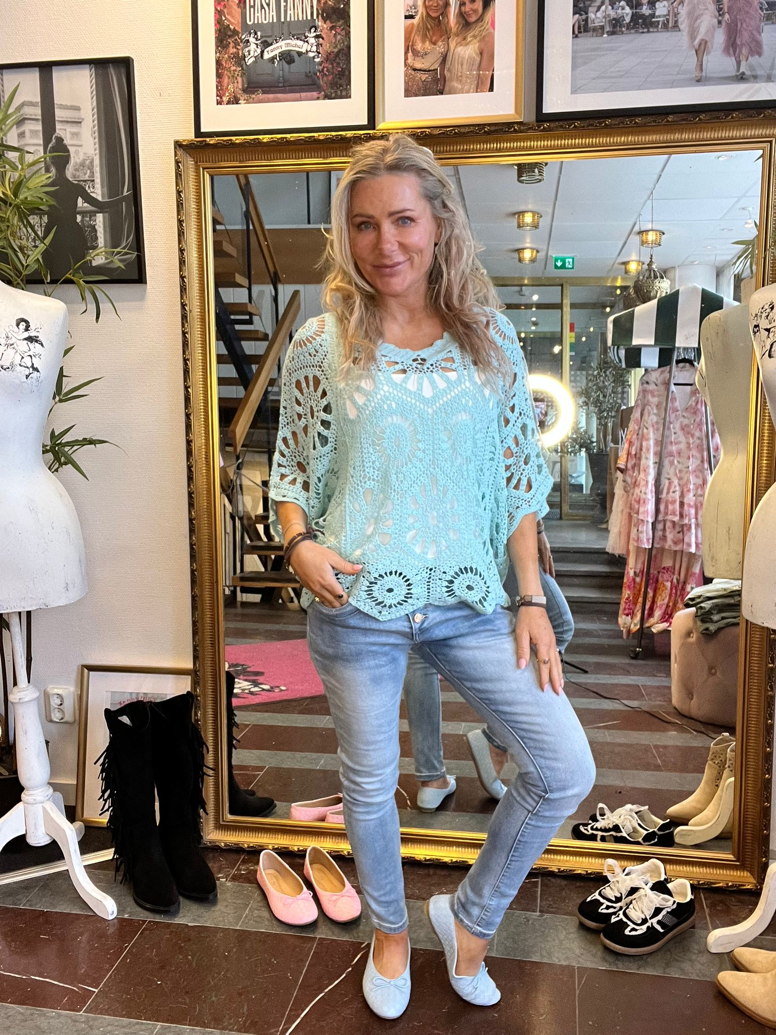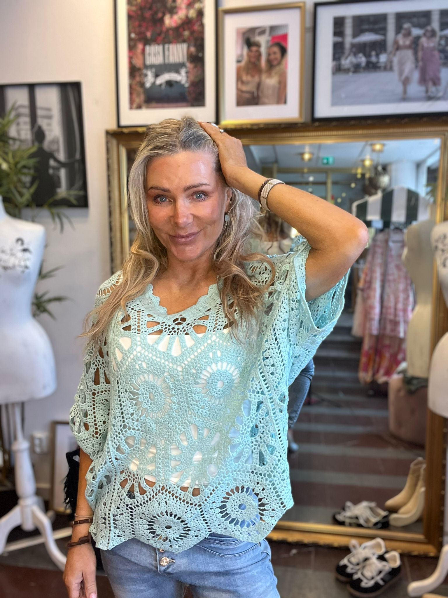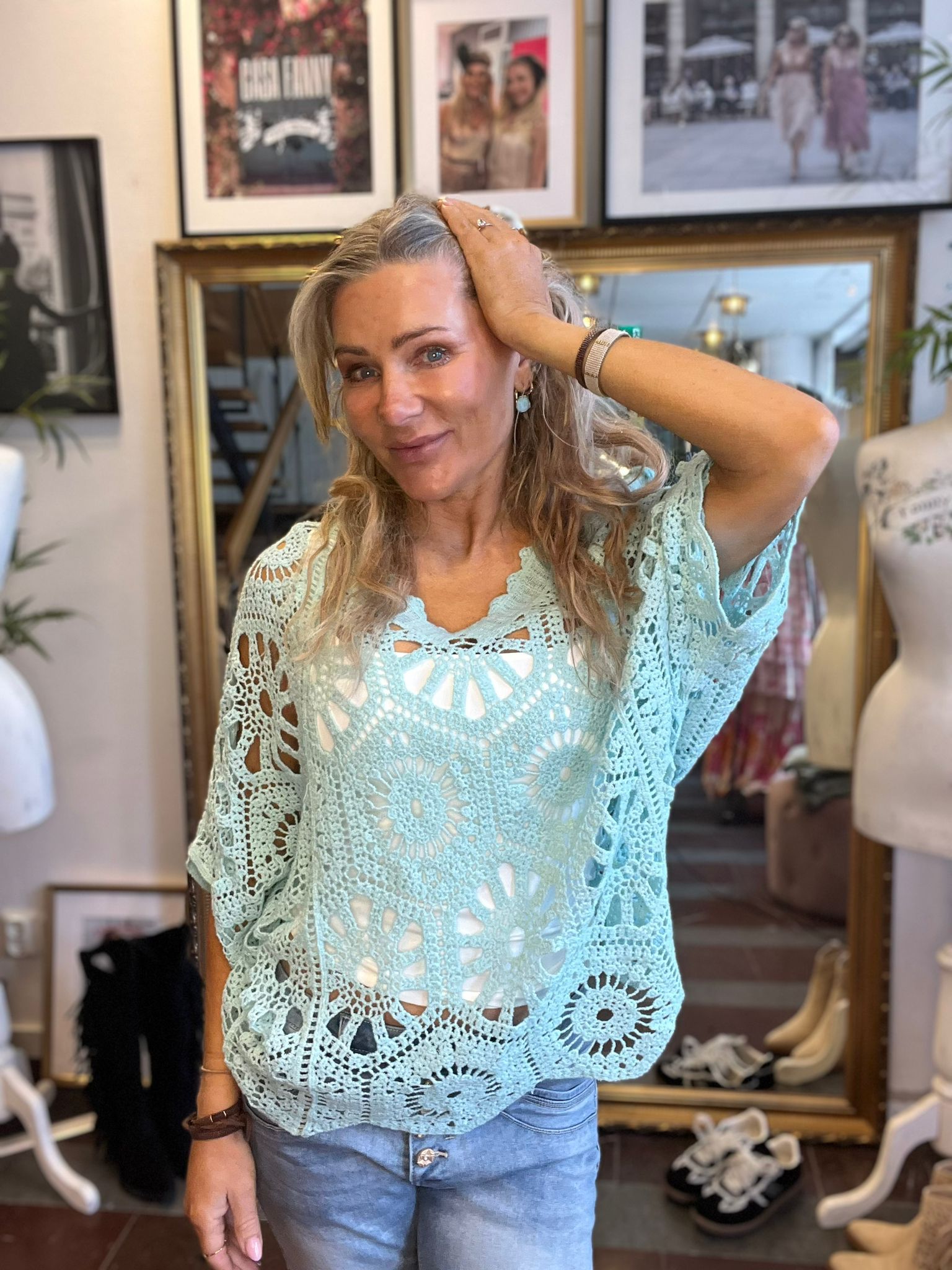 Alva – Virkad topp med pingvinärm – Aqua