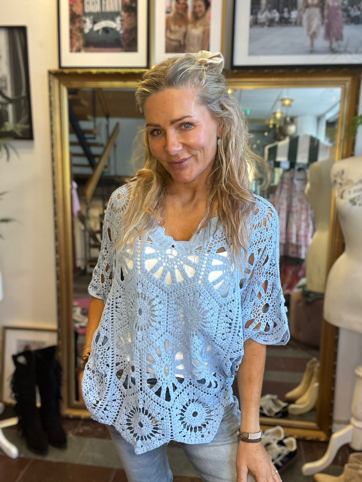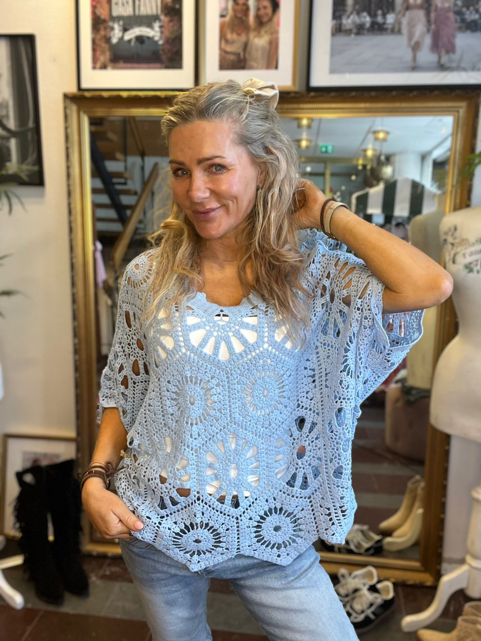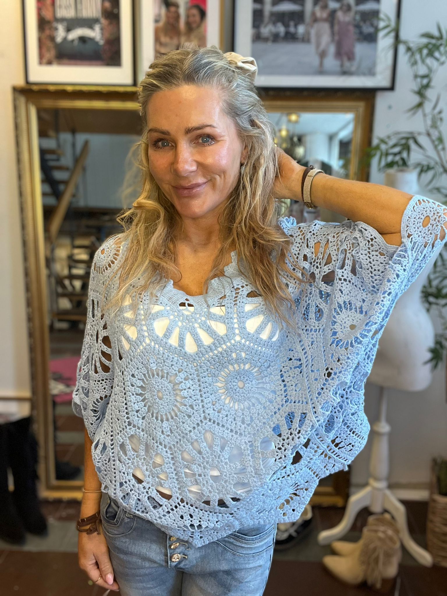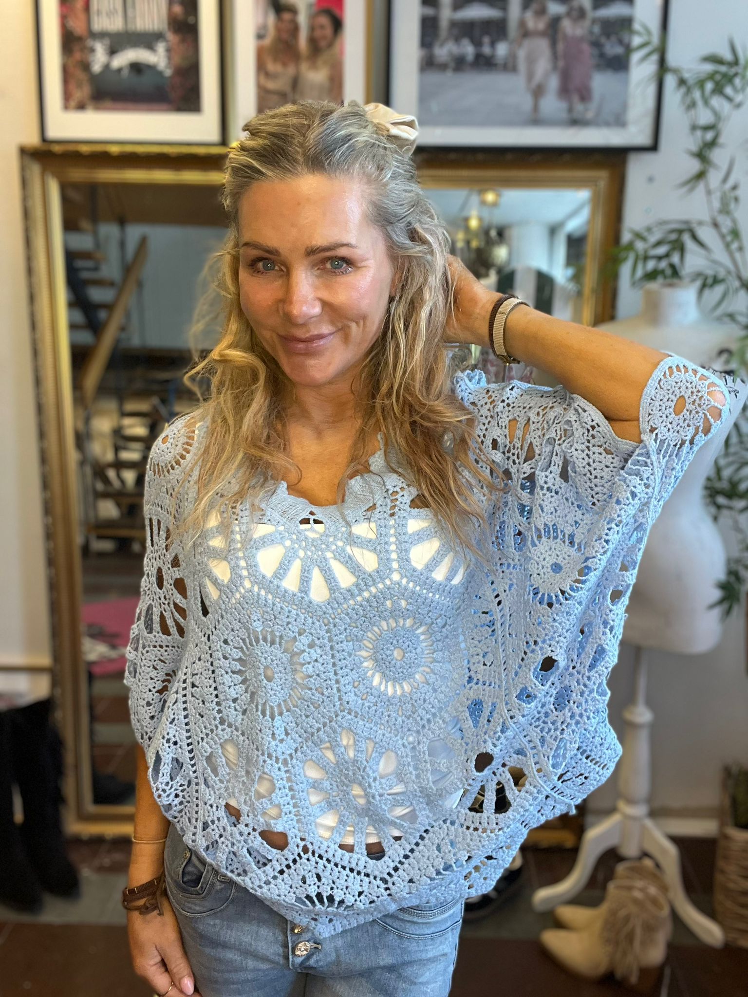 Alva – Virkad topp med pingvinärm- Ljusblå