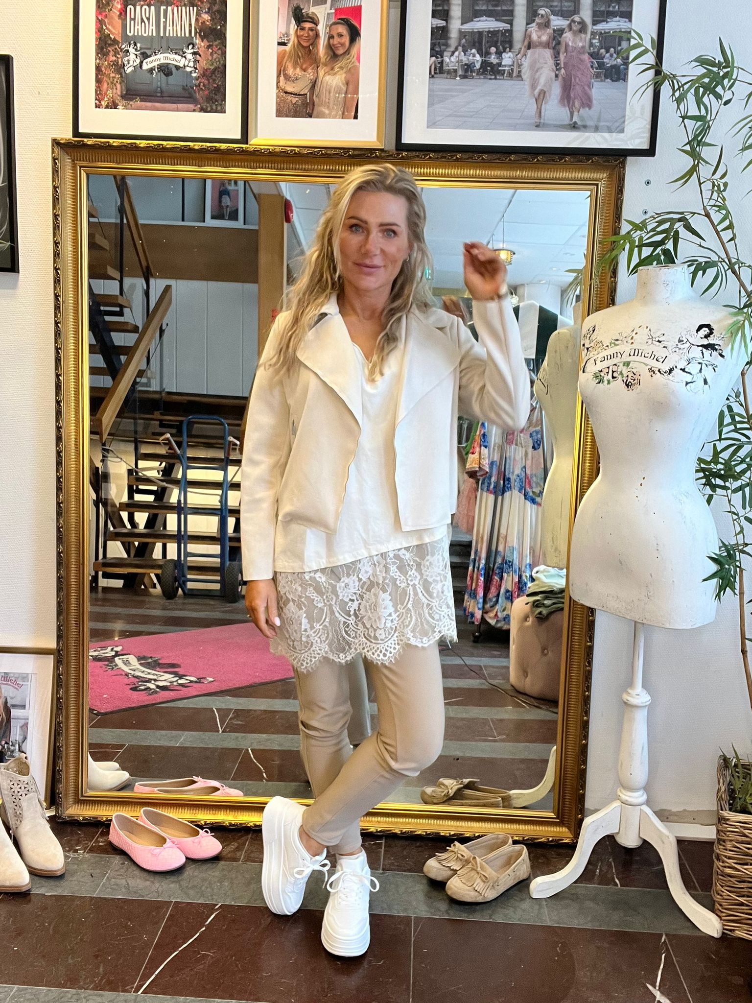 Amanda – Asymmetrisk topp med spets nedtill – Beige