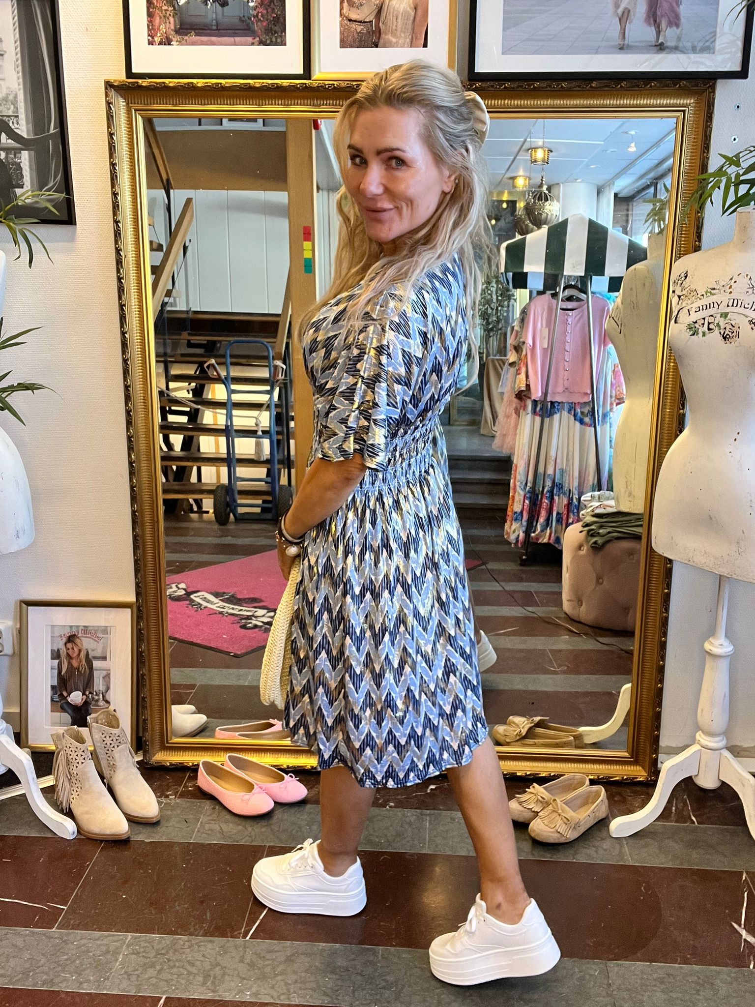Stretchig mönstrad klänning i mjukt och härlig material!
