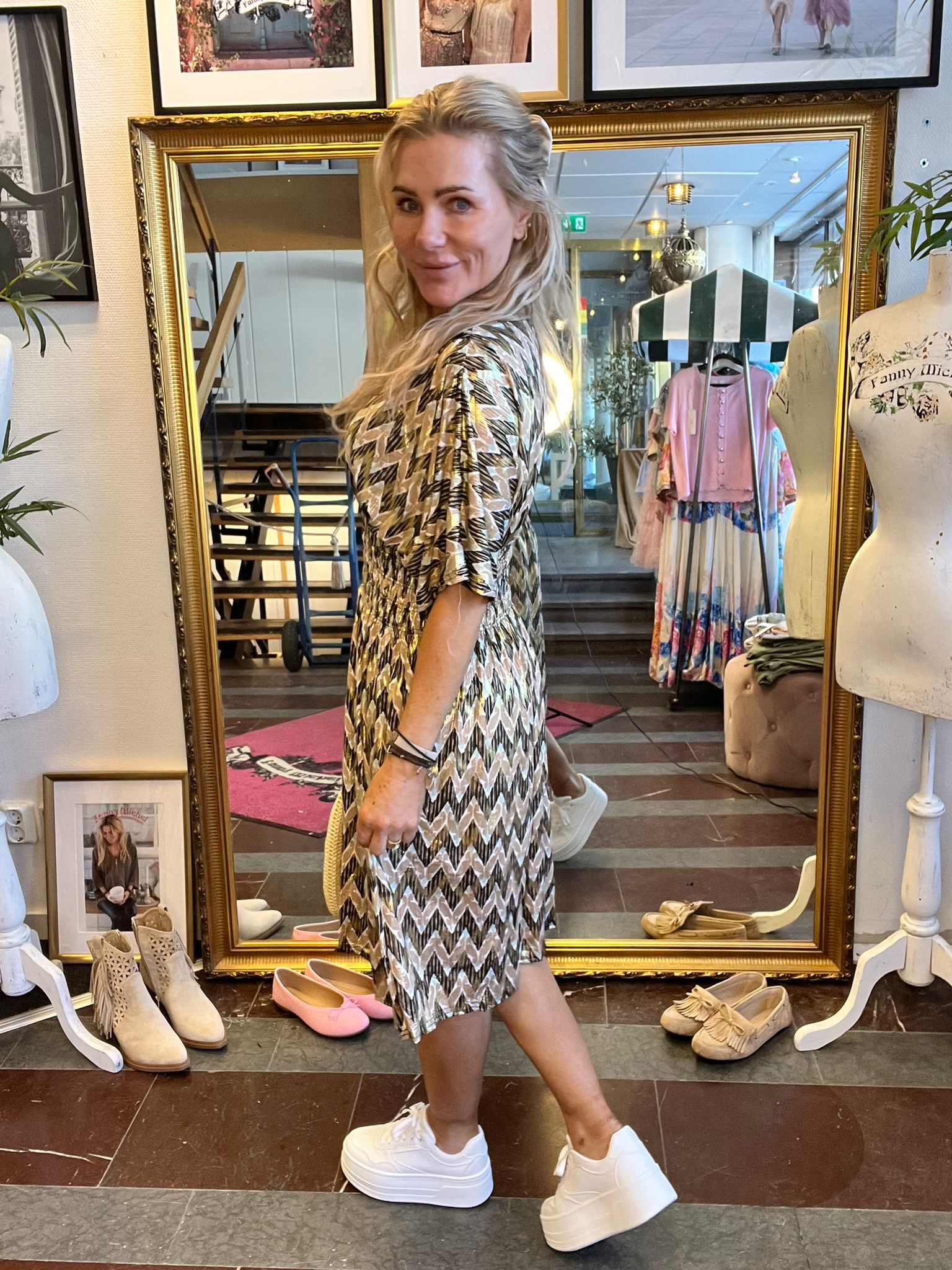 Stretchig mönstrad klänning i mjukt och härlig material!