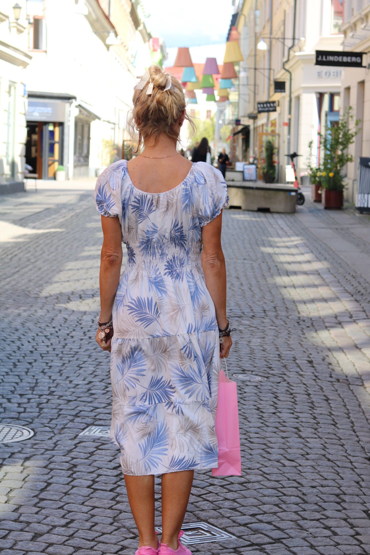 Elsi – Klänning med bladmönster- Ljusblå