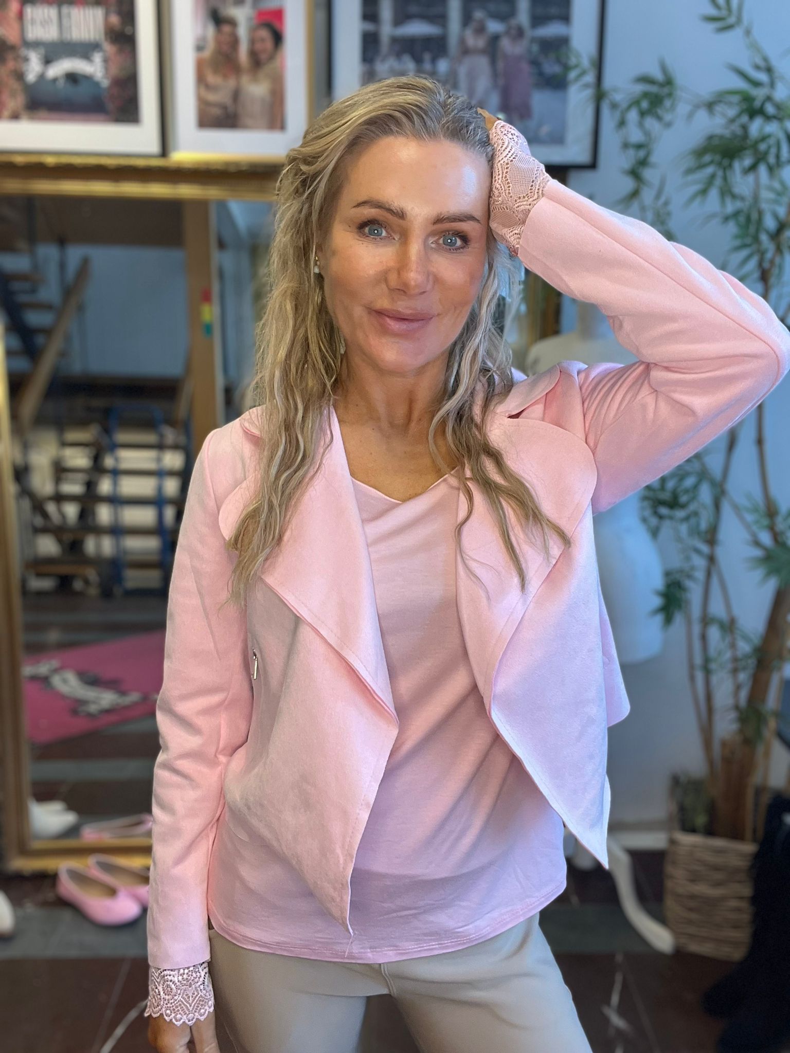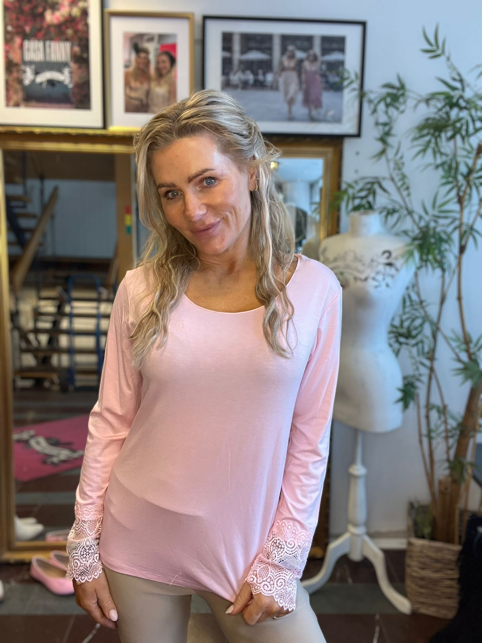 Emmy – Mjukiströja tröja med spets – Rosa