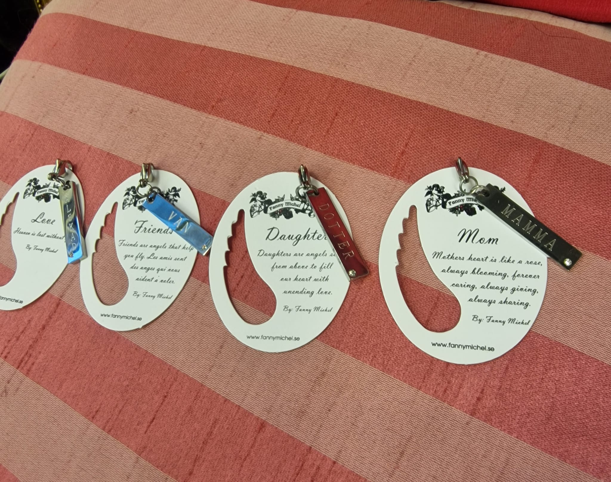 Liten blingsten samt text graverat på smycket.
