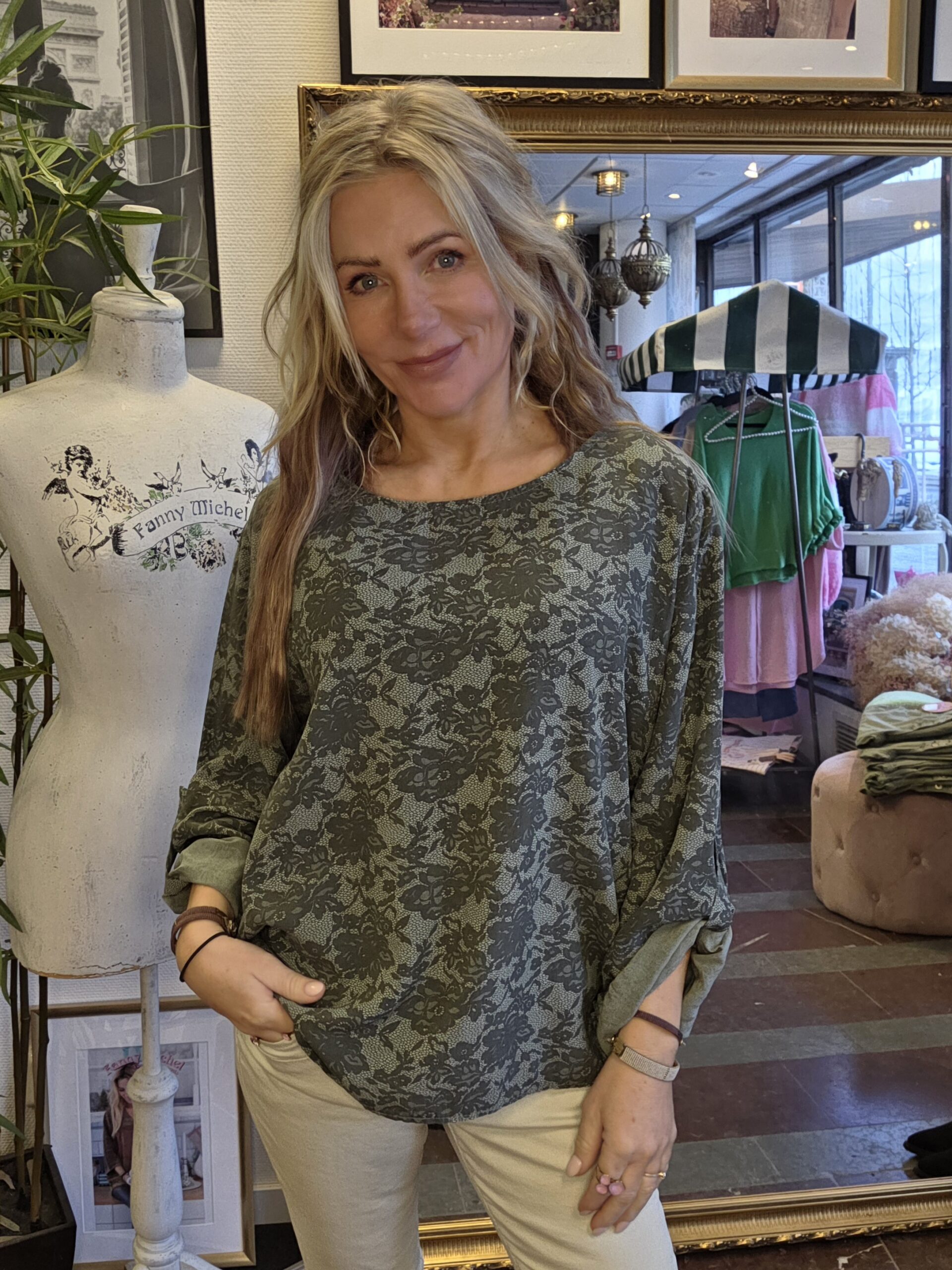 Fanny Michel – Jennifer – Viscosblus med spetsmönster – Khaki