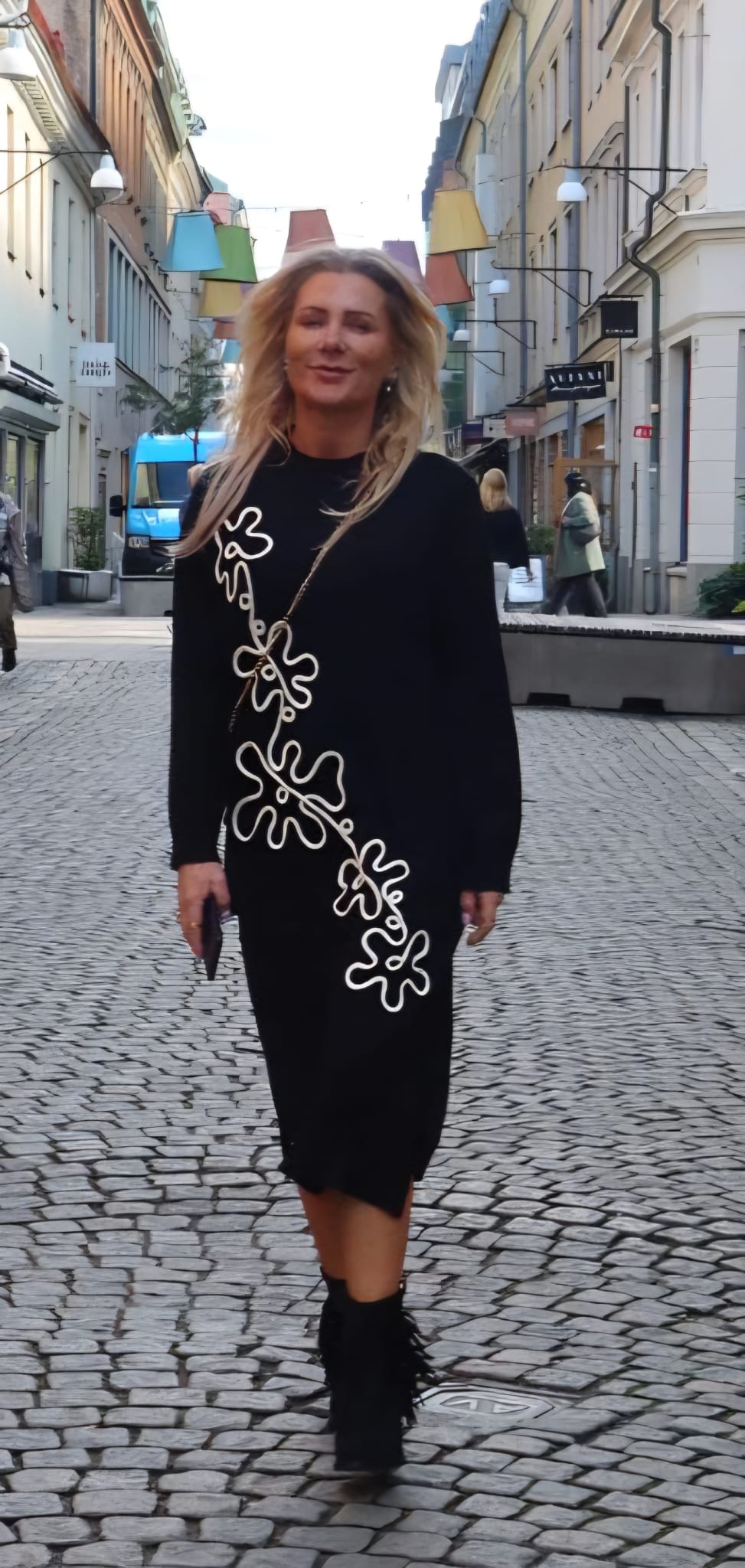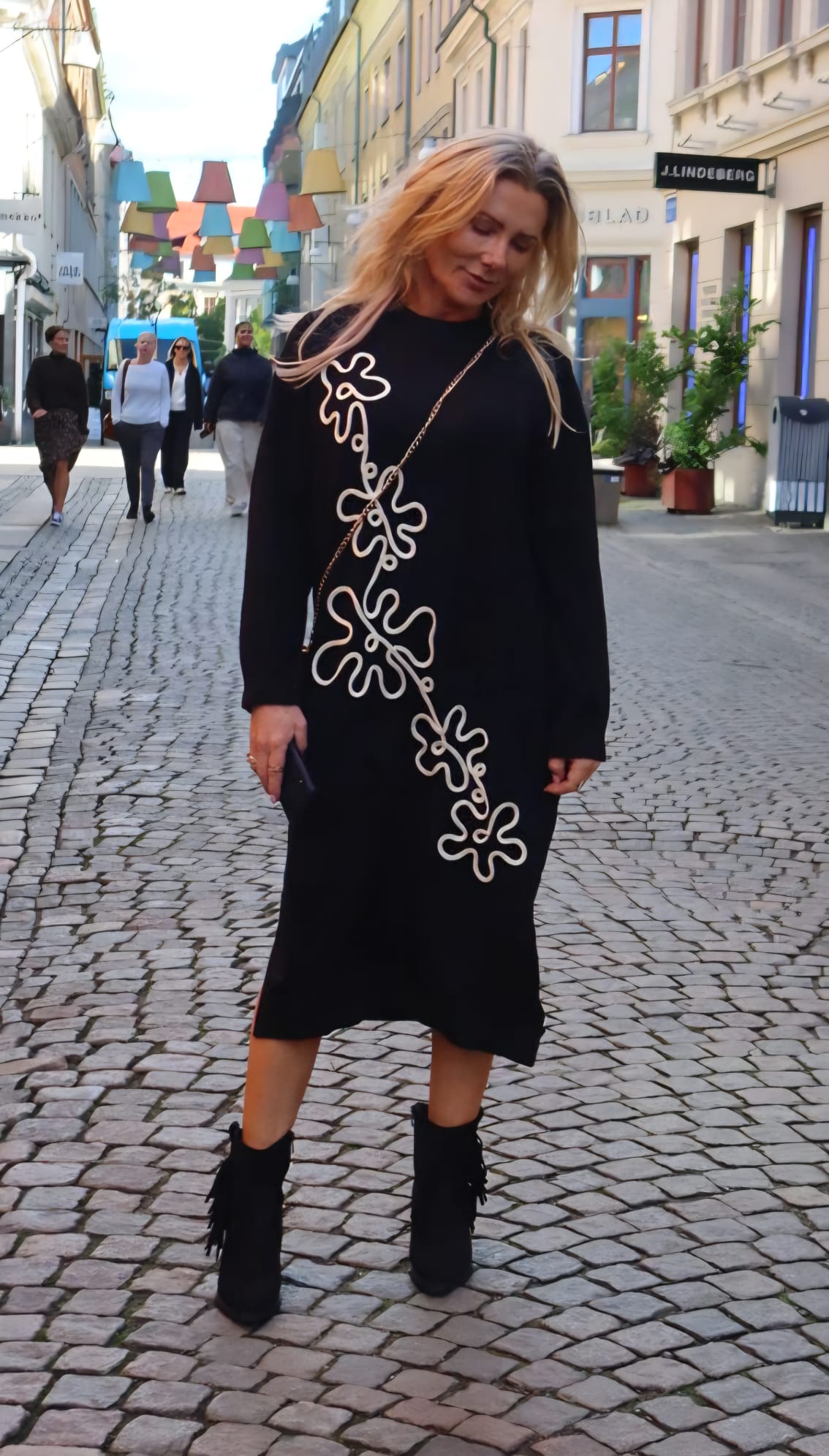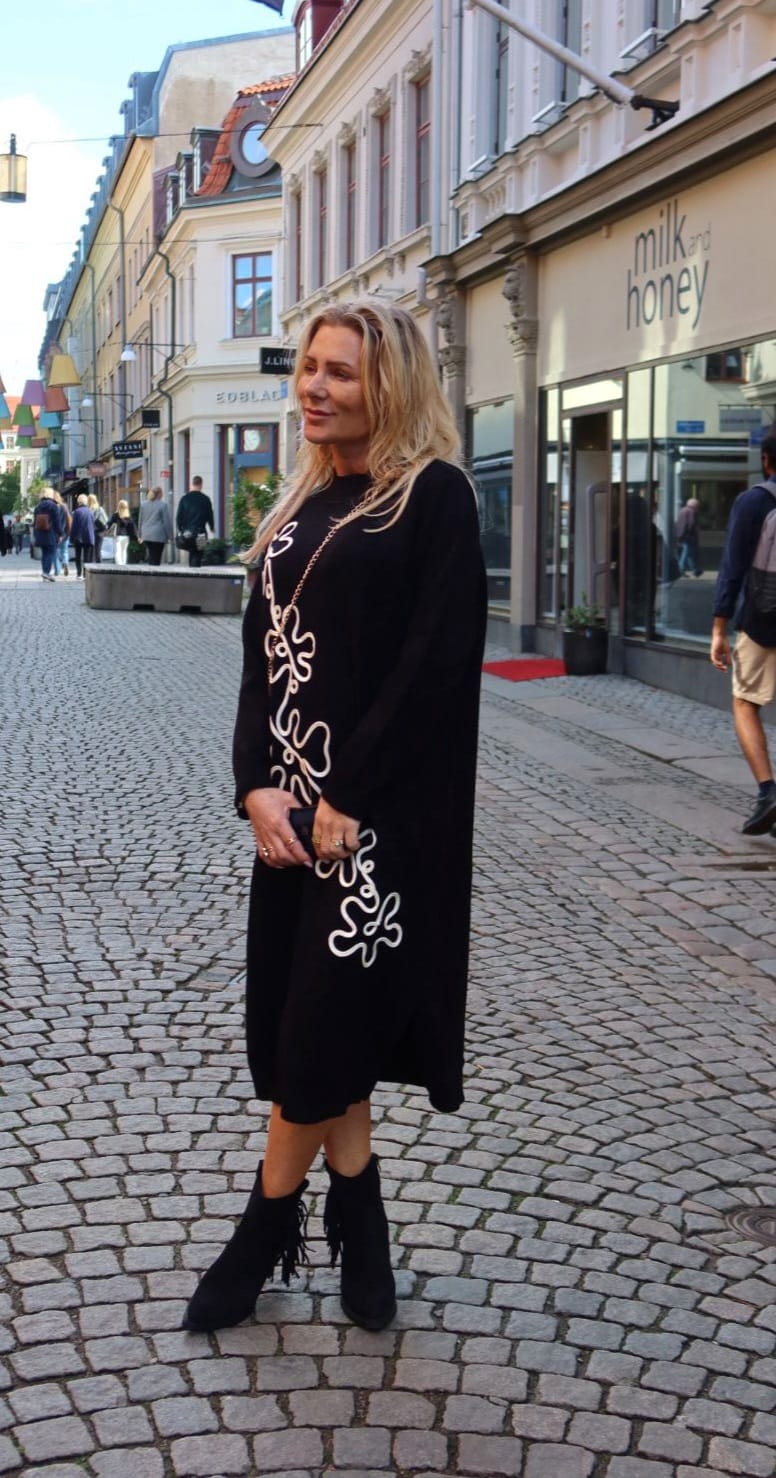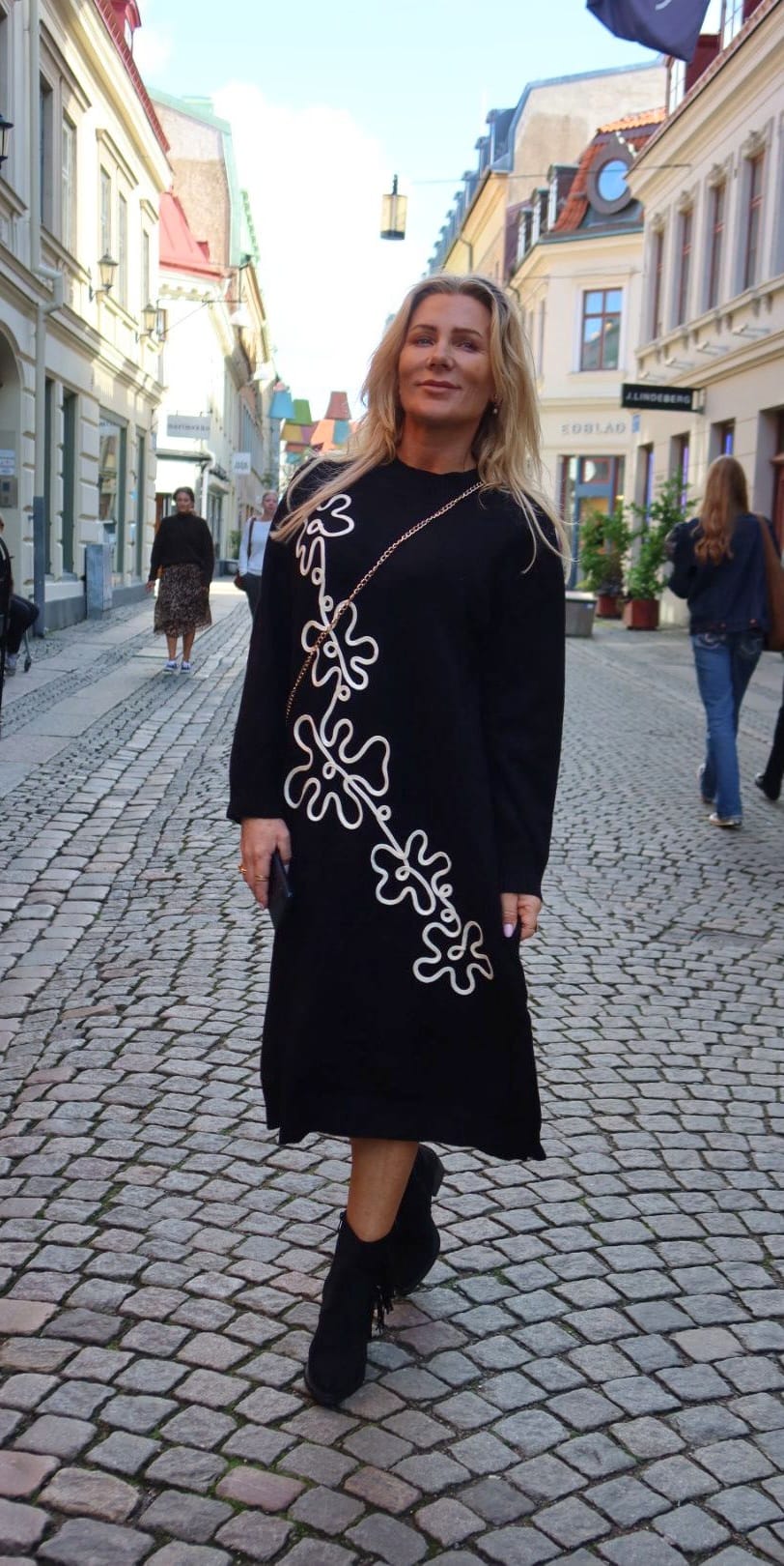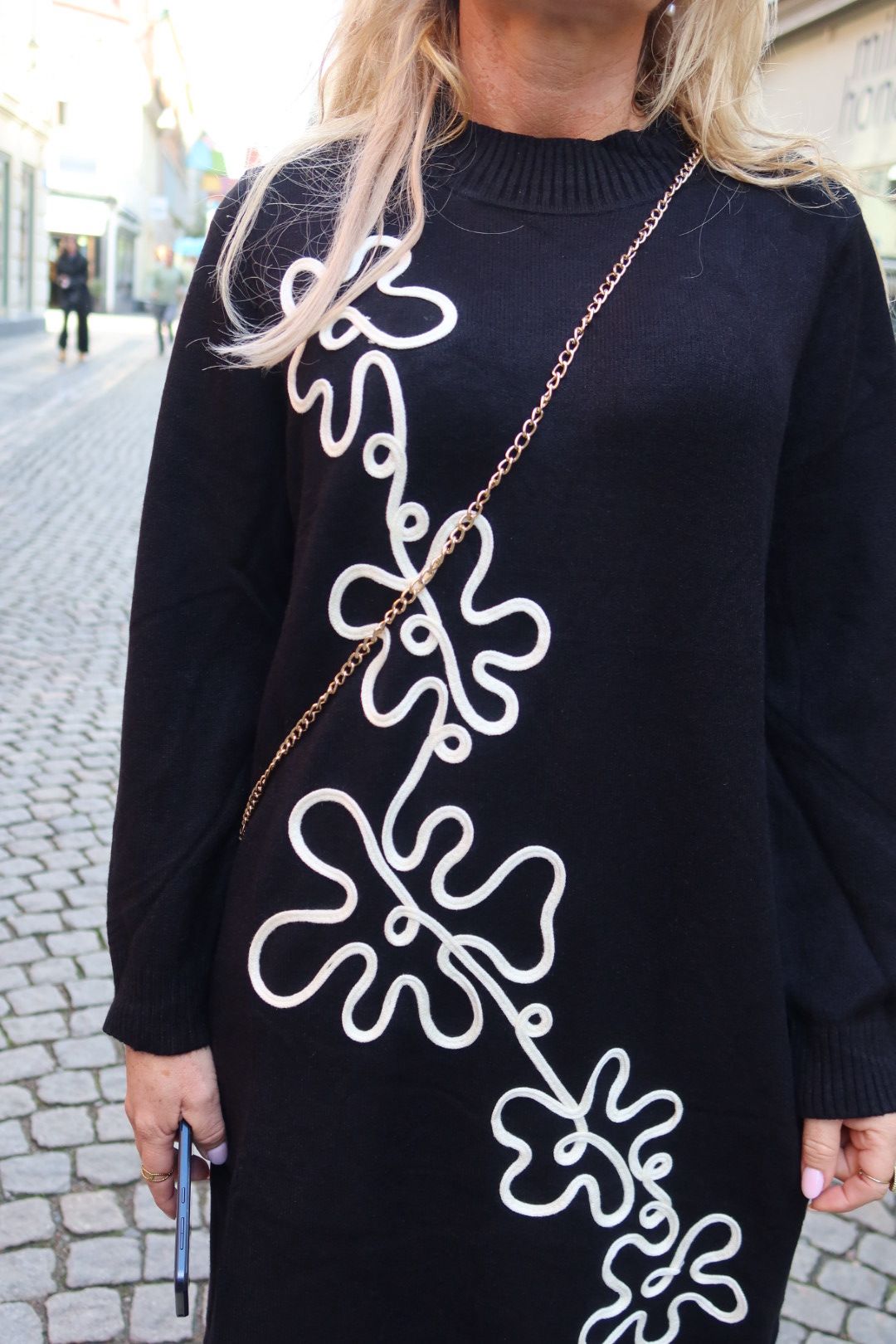 Betty – Knitted Polo Dress with floral pattern – Black