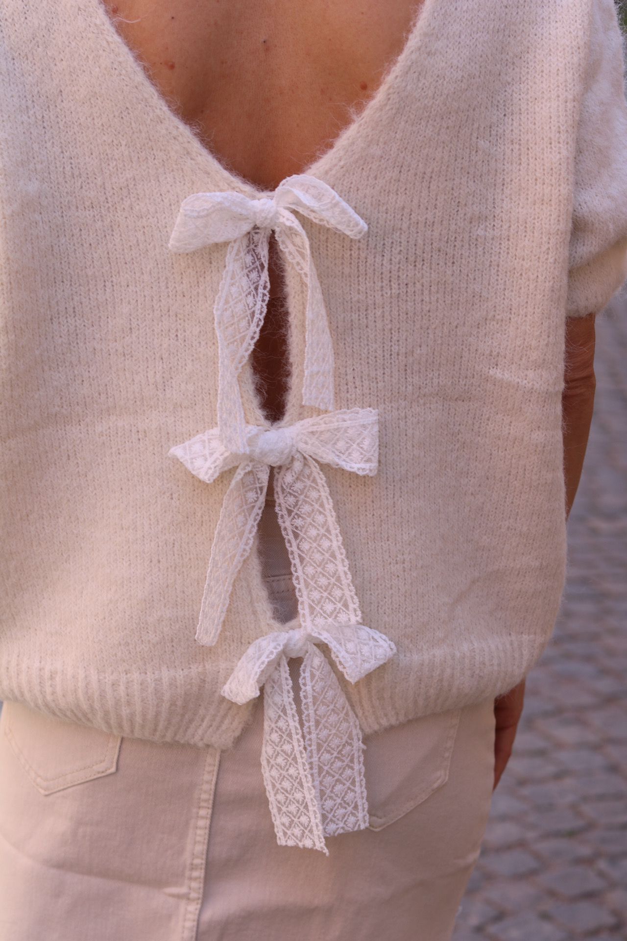Absolutely wonderful knitted top with charming lace bows on the back!