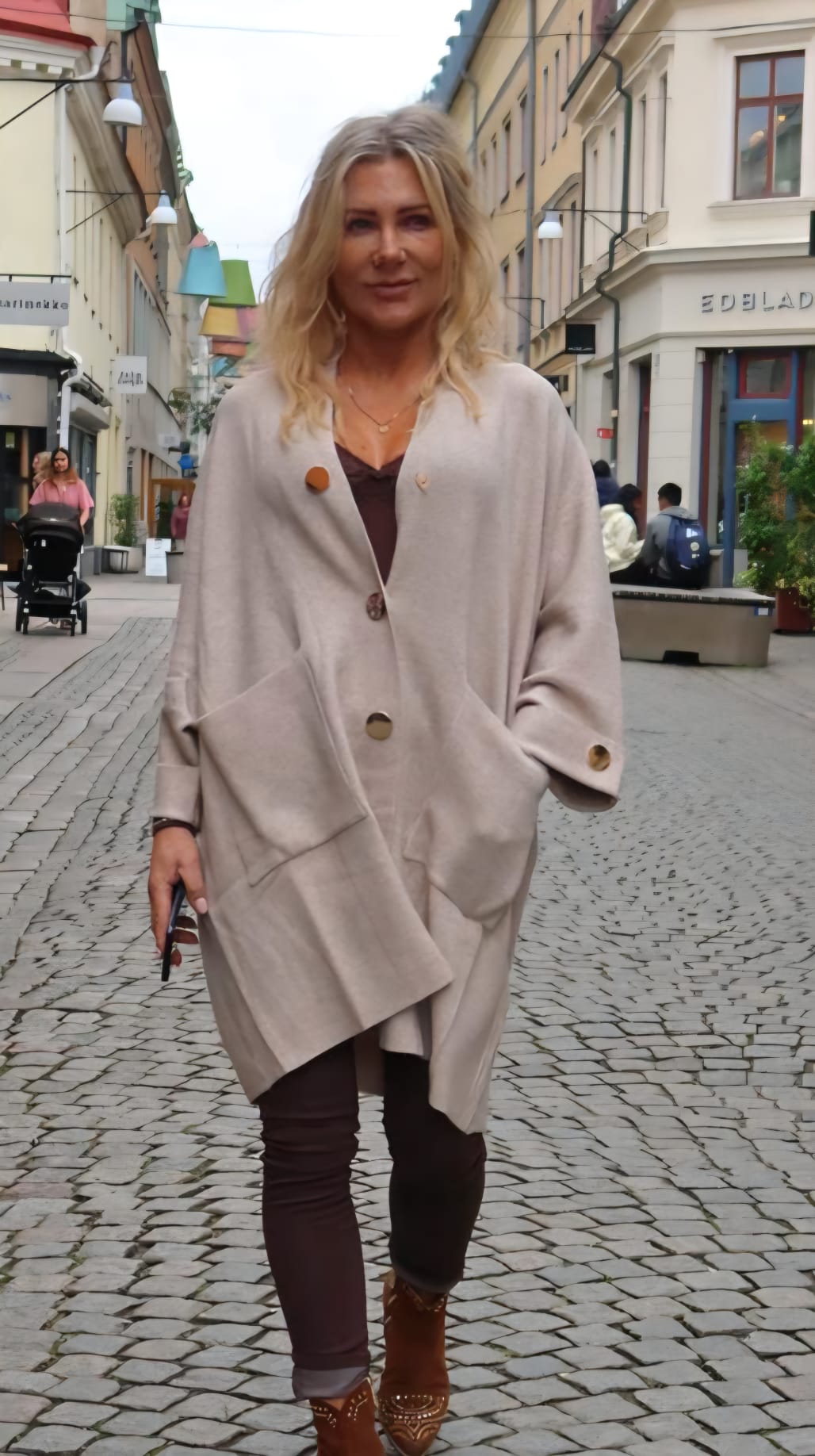 Super cool fine knitted cardigan with pockets and gold buttons!