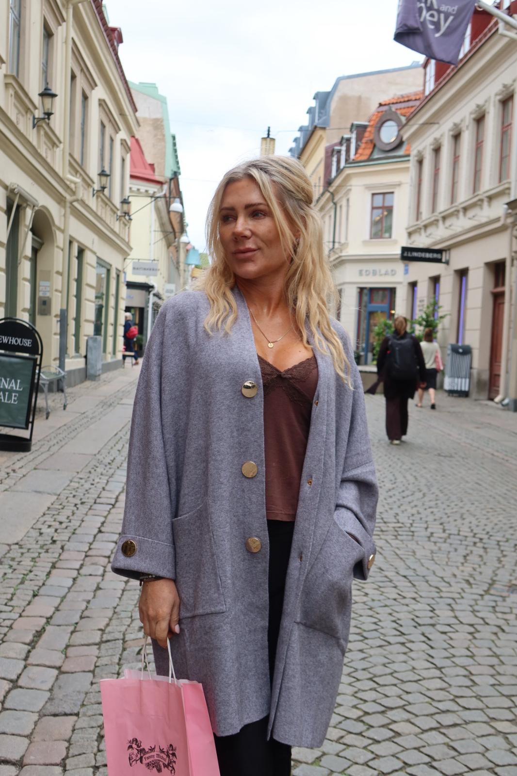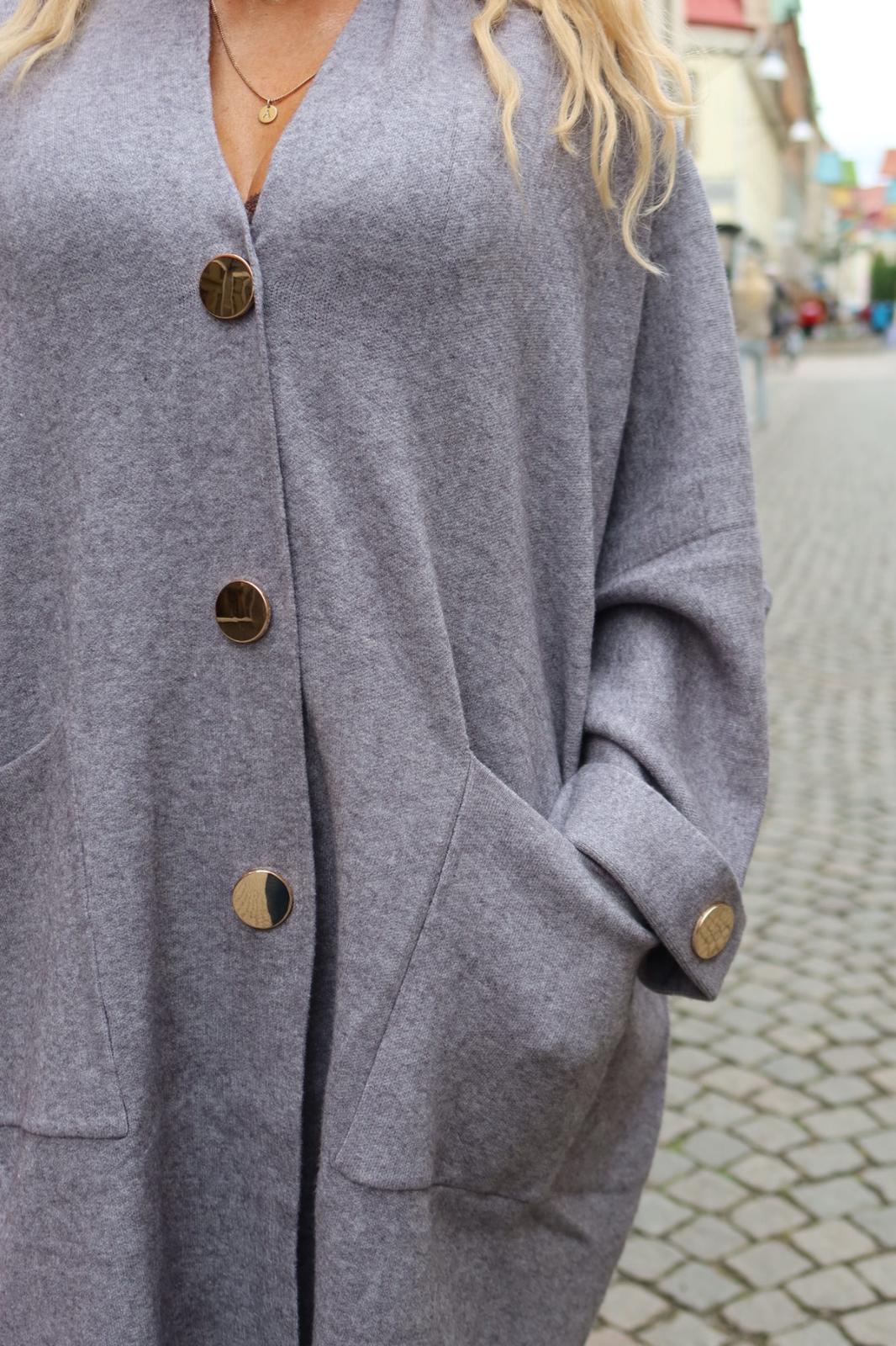 Super cool fine knitted cardigan with pockets and gold buttons!