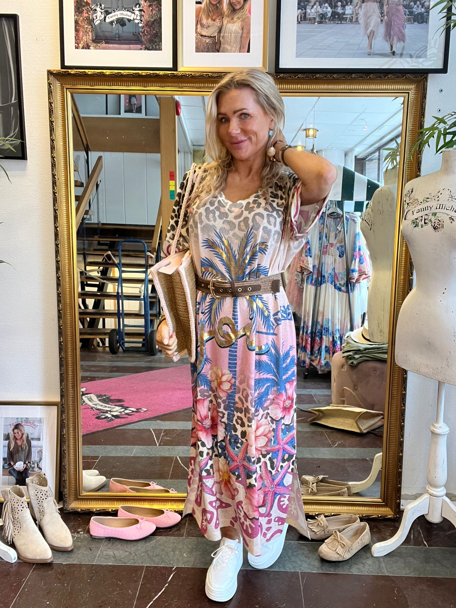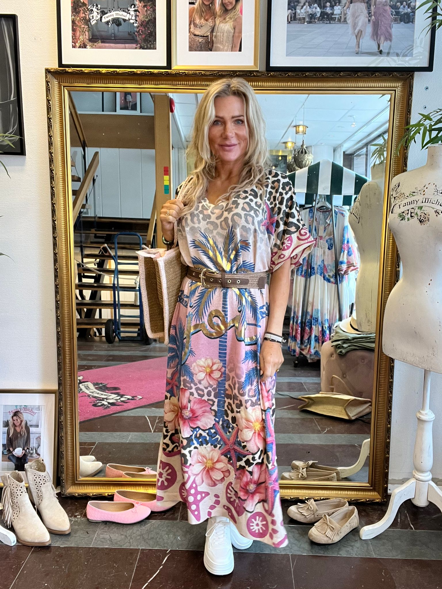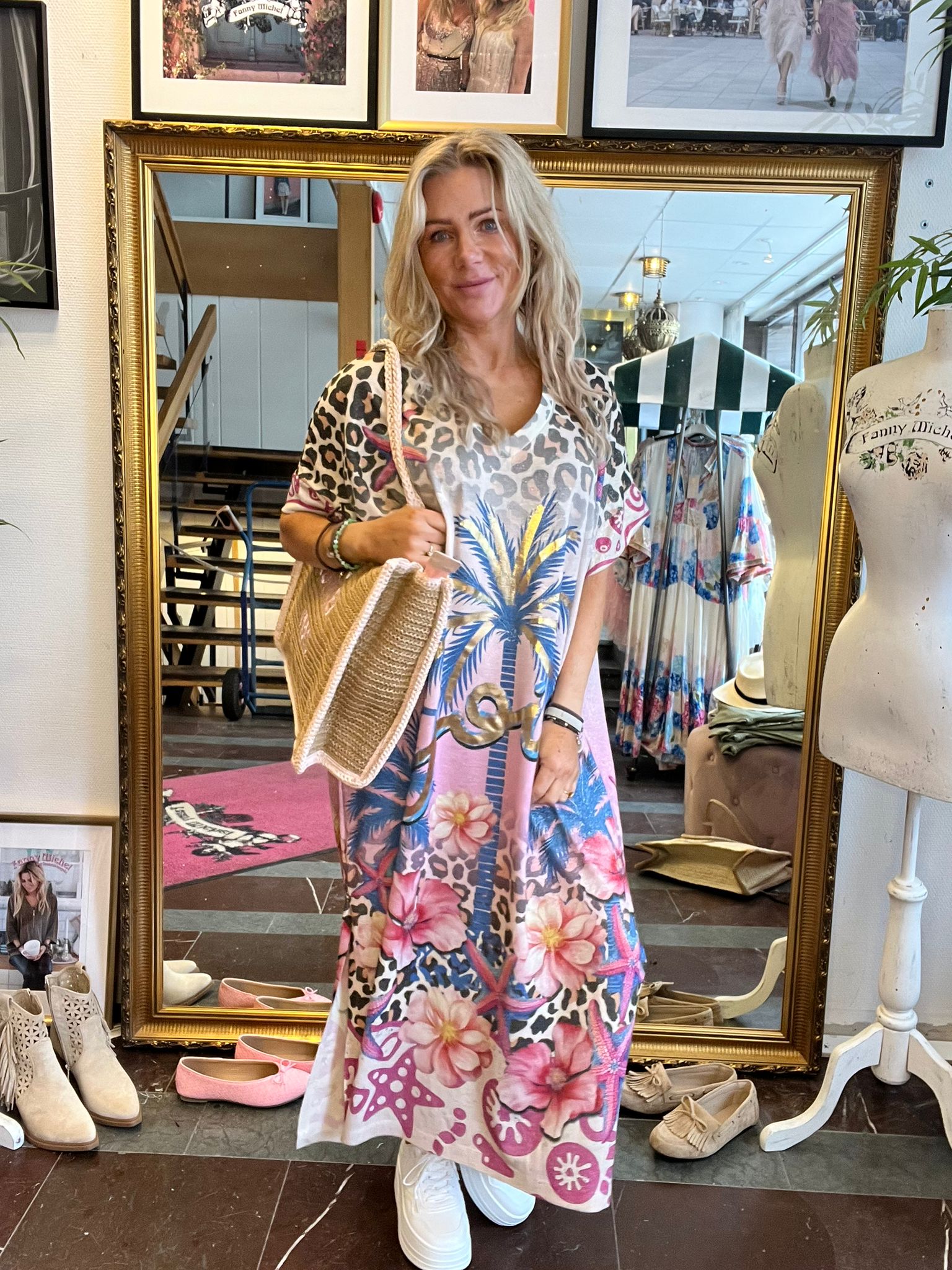 Tropical pattern and leo. Size measurements: Onesize • Armpit to armpit circumference: approx. 144 cm • Length, shoulder and bottom: approx. 122 cm. ——————————————————————– Onesize fits approximately XS/34 – XL/42.Fits approximately XS/34 - XL/42. The model in the picture is approximately 163 cm tall.
