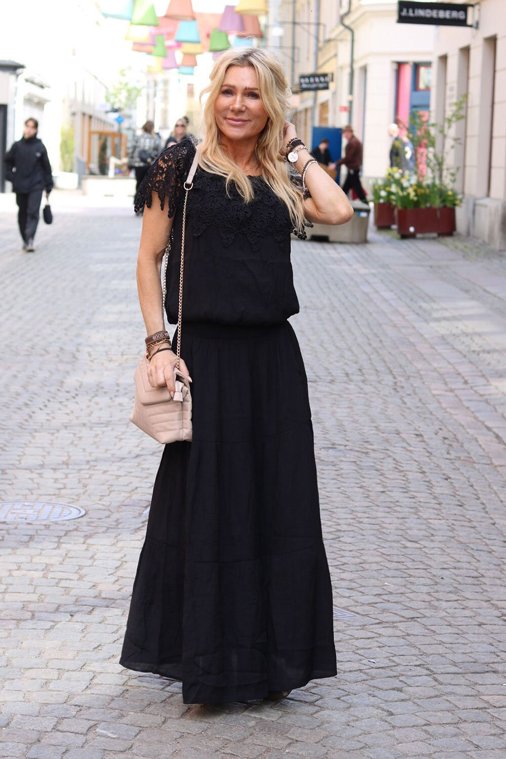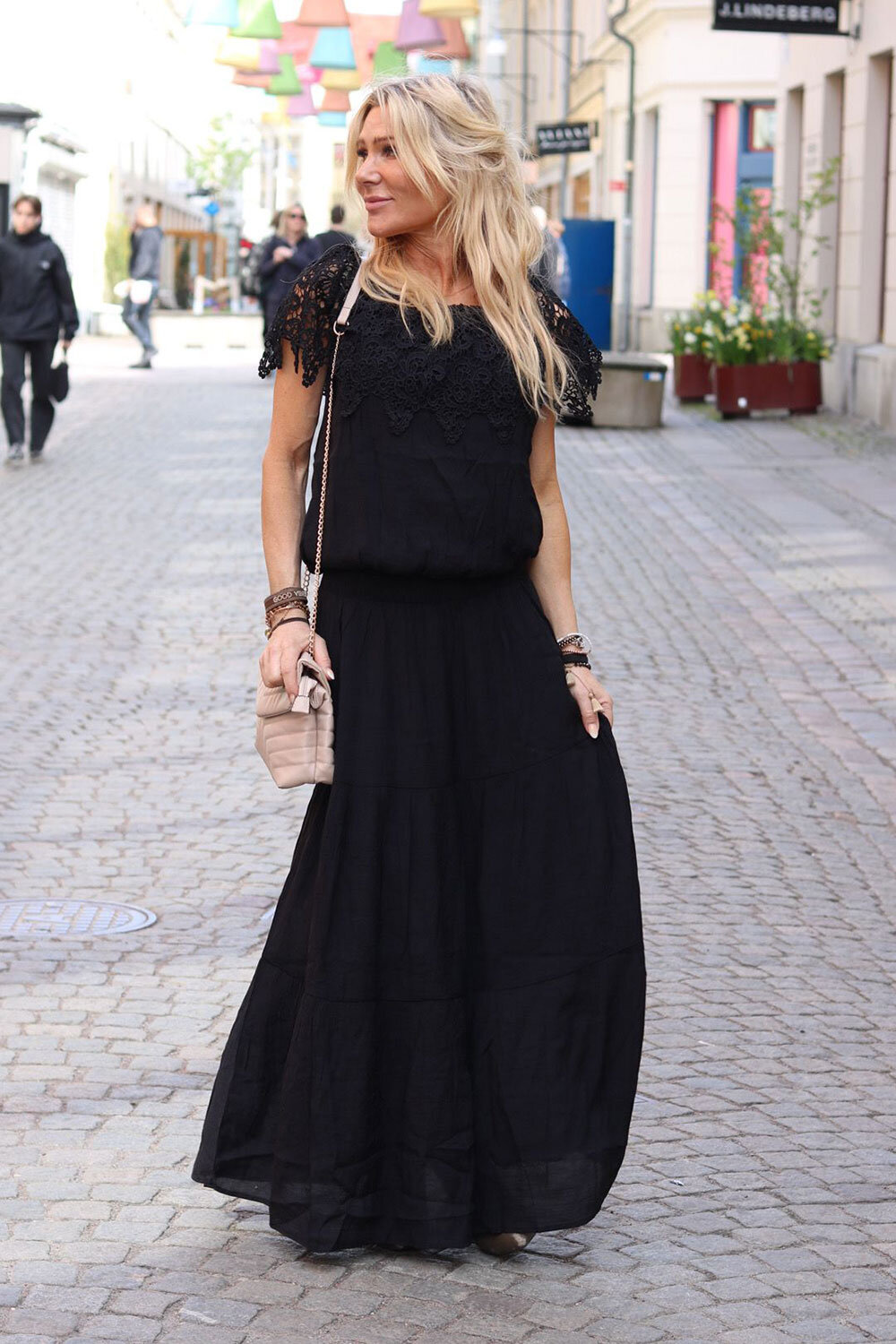 Has a petticoat. Dimensions: S/36 • Waist circumference: approx. 64 cm, can be stretched approx. 10 – 15 cm • Length: approx. 100 cm. M/38 • Waist circumference: approx. 68 cm, can be stretched approx. 10 – 15 cm • Length: approx. 100 cm. L/40 • Waist circumference: approx. 72 cm, can be stretched approx. 10 – 15 cm • Length: approx. 101 cm. ————————————————– ——————— S/36 – L/40, normal in size. Read more under specifications.Smock in the waist, normal in size. The model is wearing size S/36.