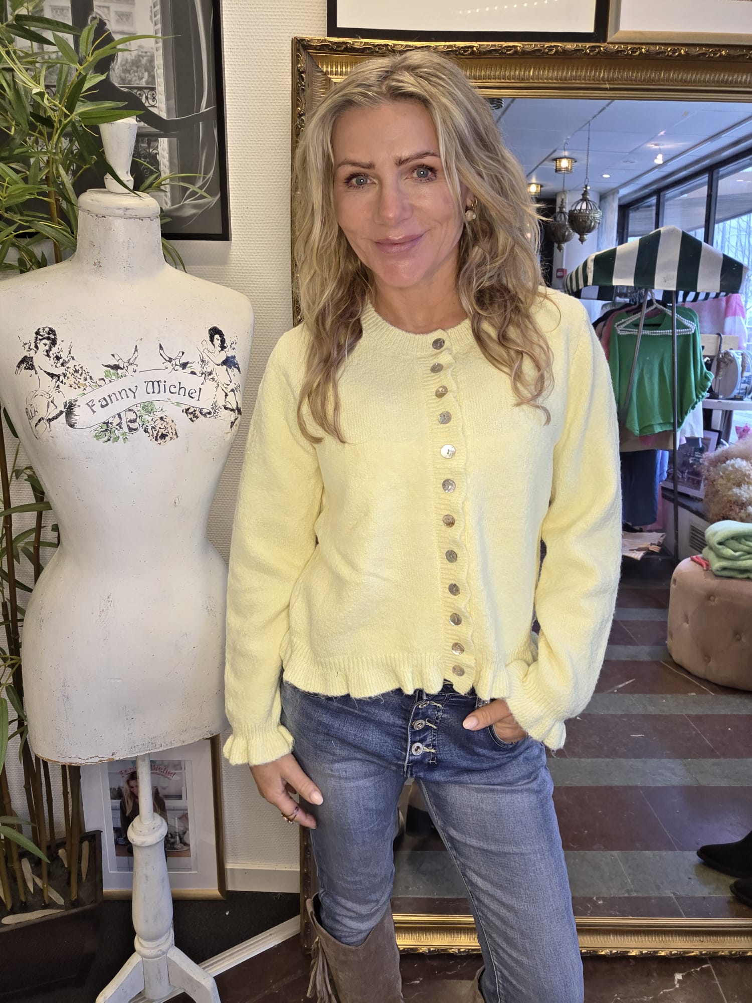 Mimmi – Ruffle cardigan with buttons – Lemon