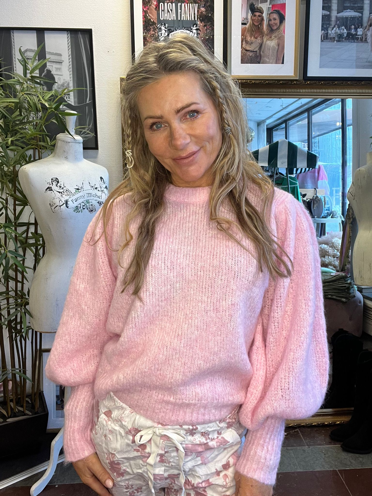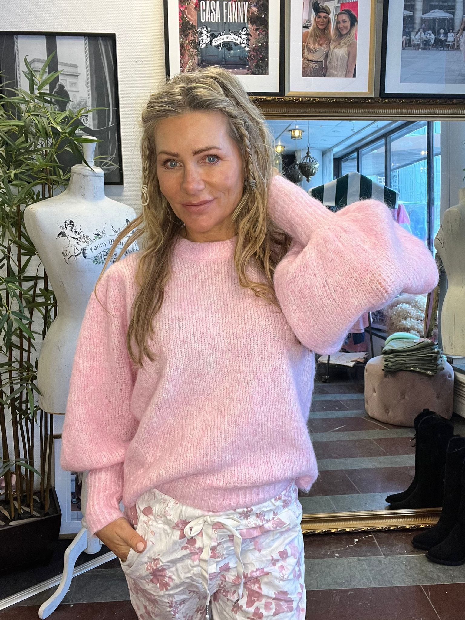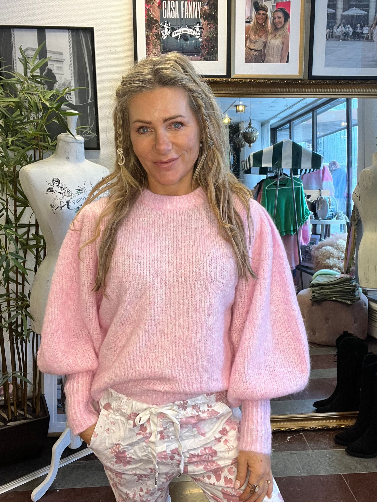 Oceanne – Knitted sweater with balloon sleeves – Pink