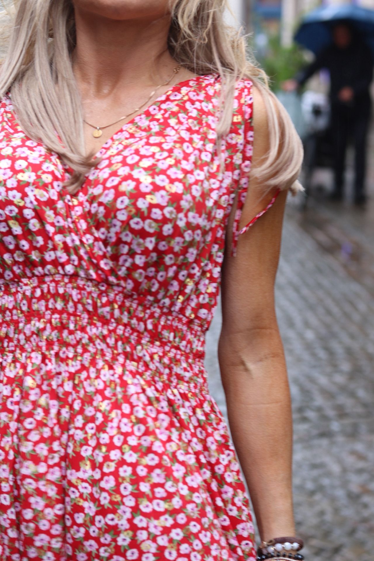 Wrapped at the top and has a smock at the waist. Size measurements: Onesize • Length from shoulder to bottom: approx. 98 cm • Waist circumference: approx. 68 cm, can be stretched to approx. 120 cm ——————————————————————– The model is approx. 163 cm tall. *Onesize, fits approximately XS/34 – XXL/44. Read more info under specifications.Fits approximately XS/34 -XXL/44