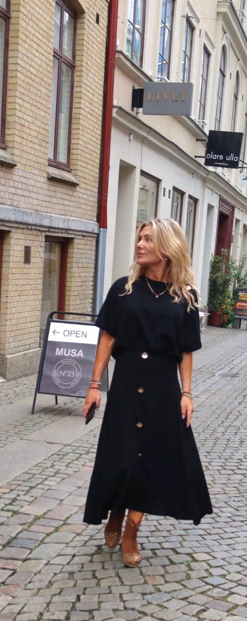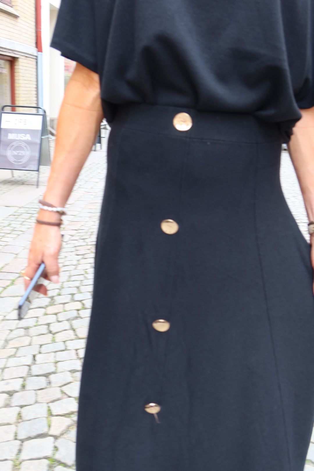 Finstickad kjol med guldknappar – Svart