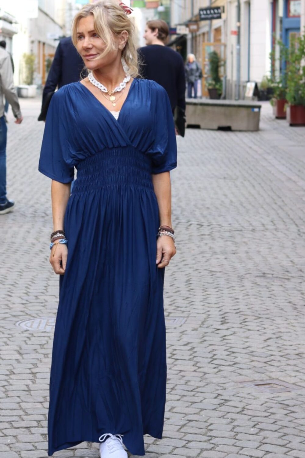 Passar uppskattningsvis XS/34 - XL/42. Modellen på bilden är ca 163 cm lång.