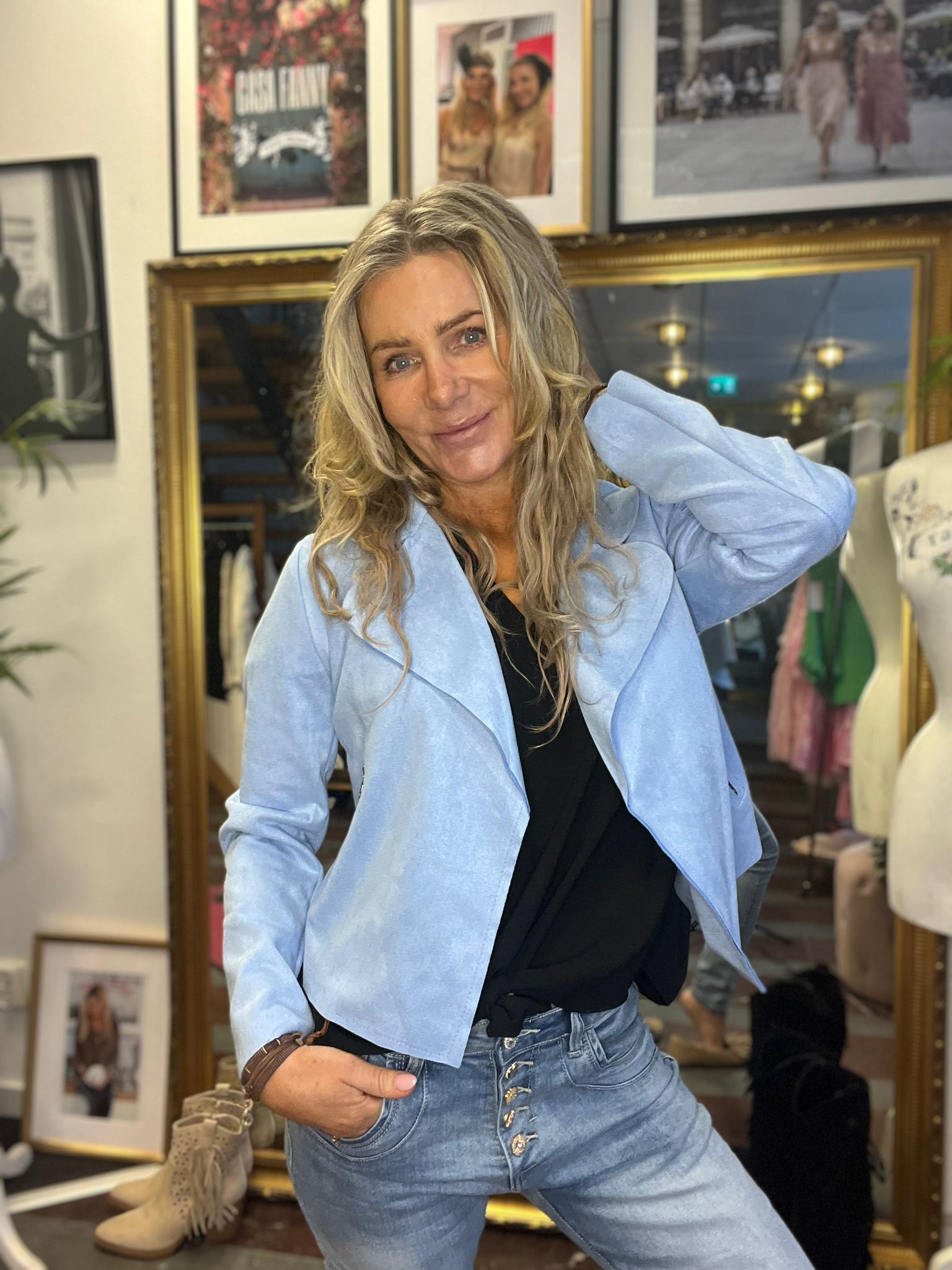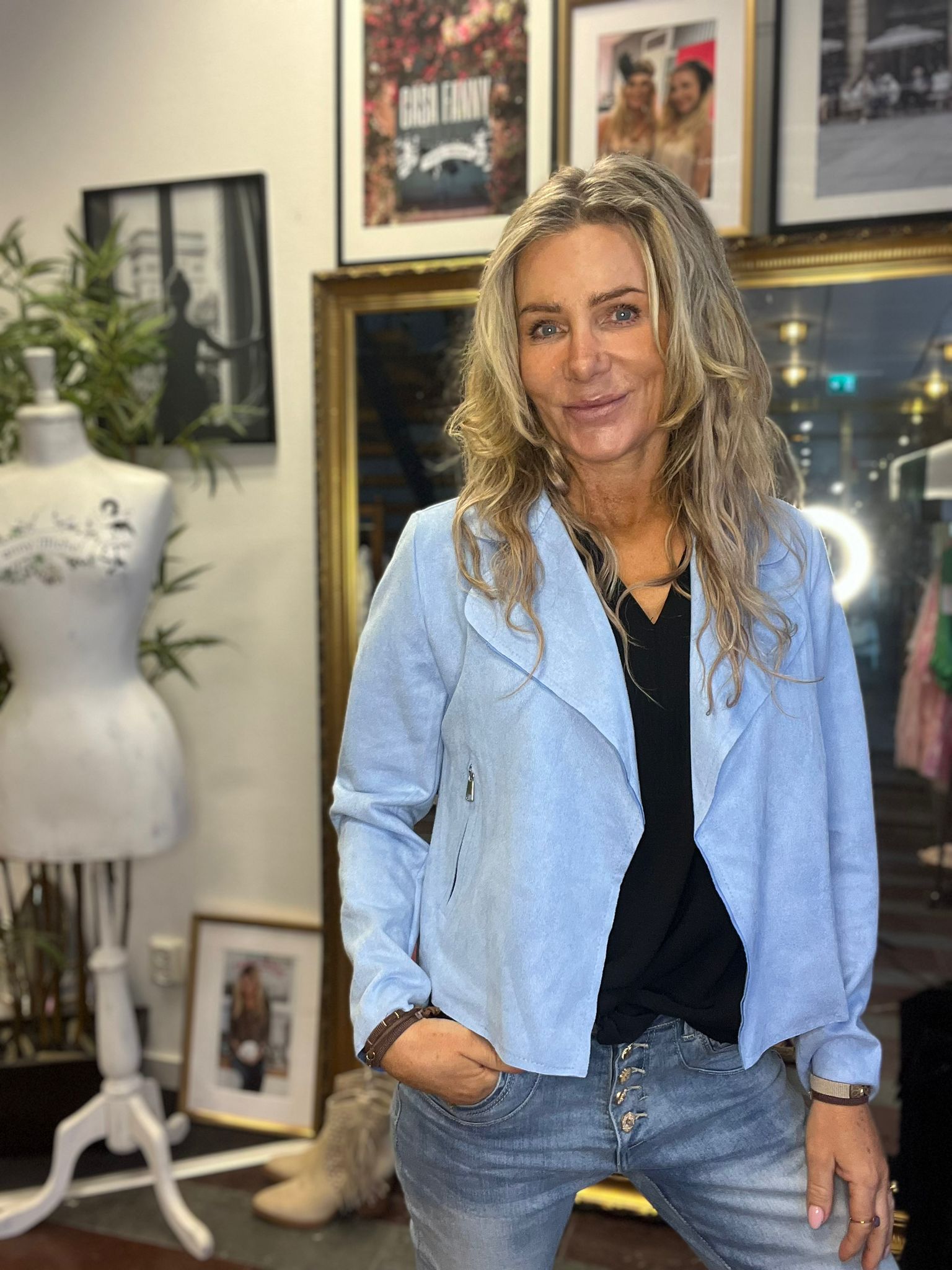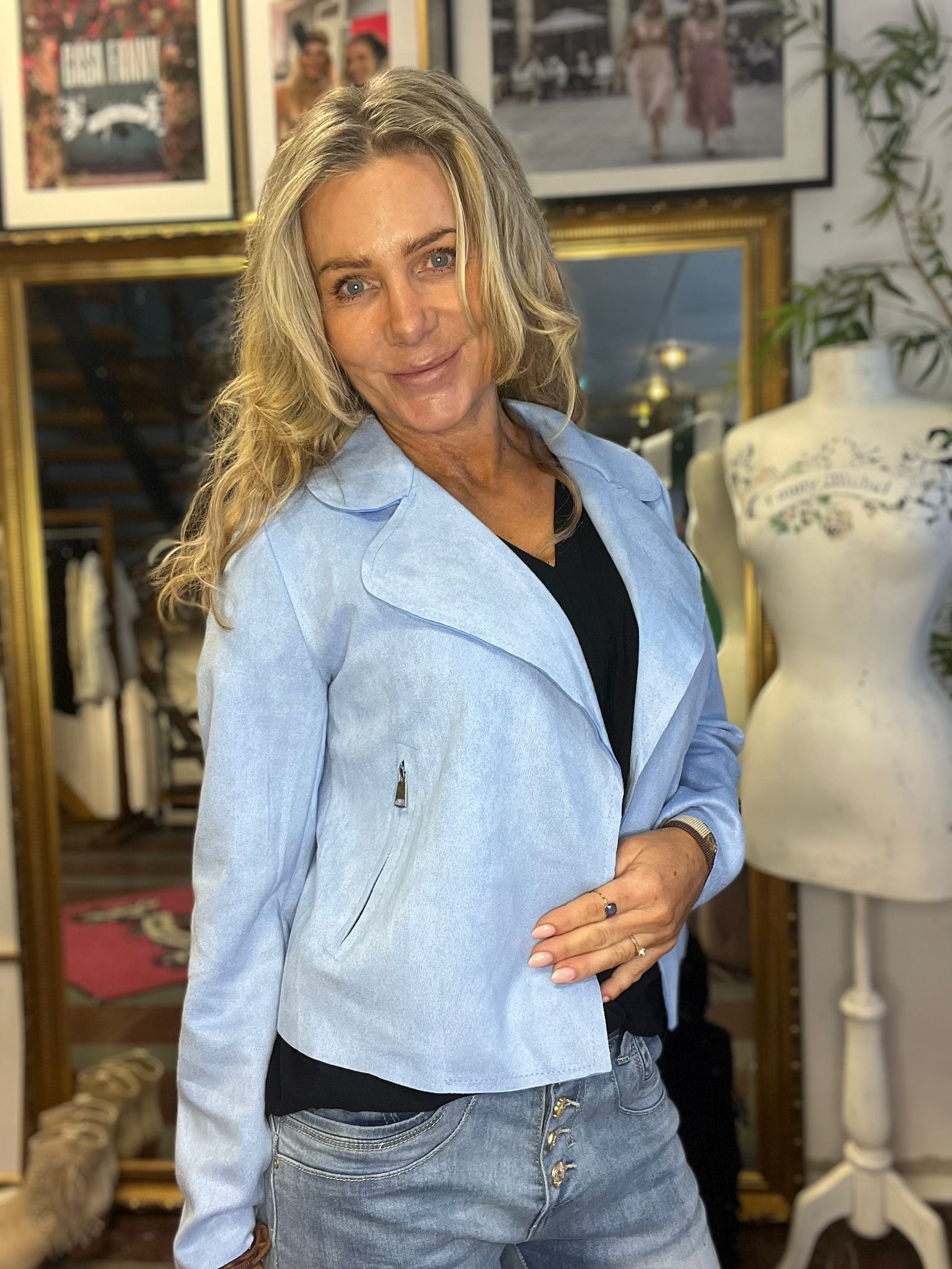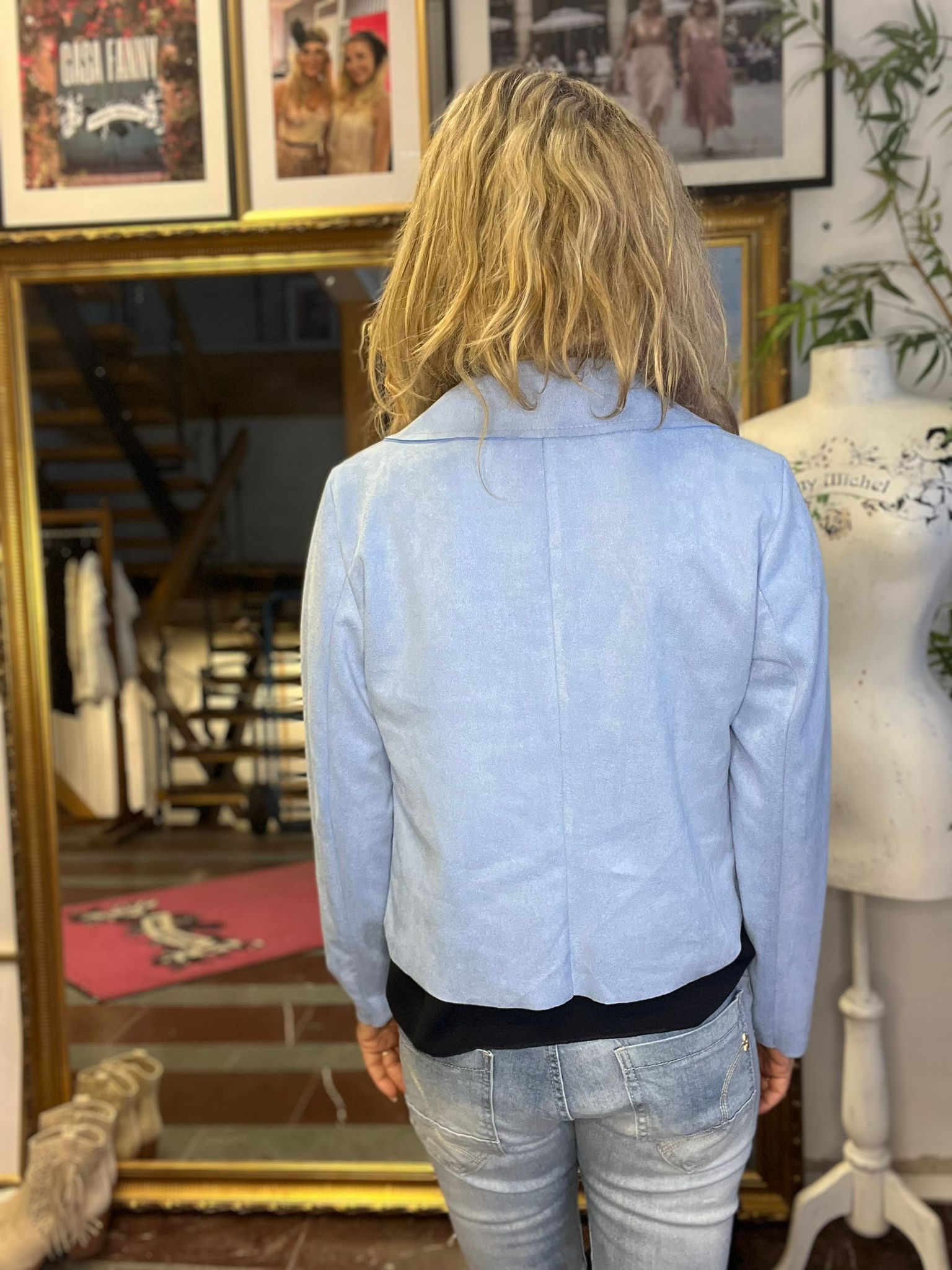 Jacka/kavaj i konstmocka – Ljusblå