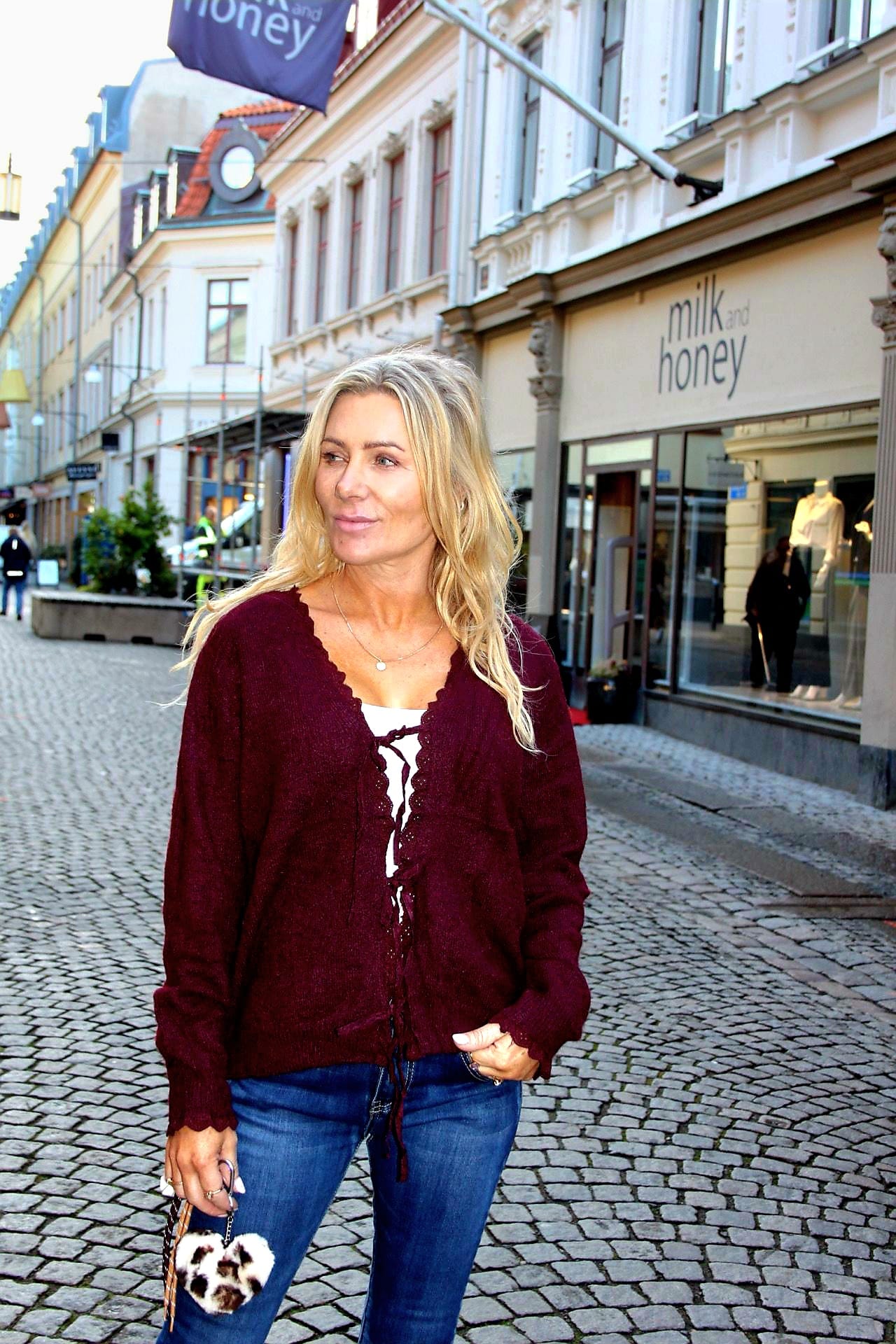 Superfin kofta med söt spetskant runt öppningen som stängs med rosettknyt!
