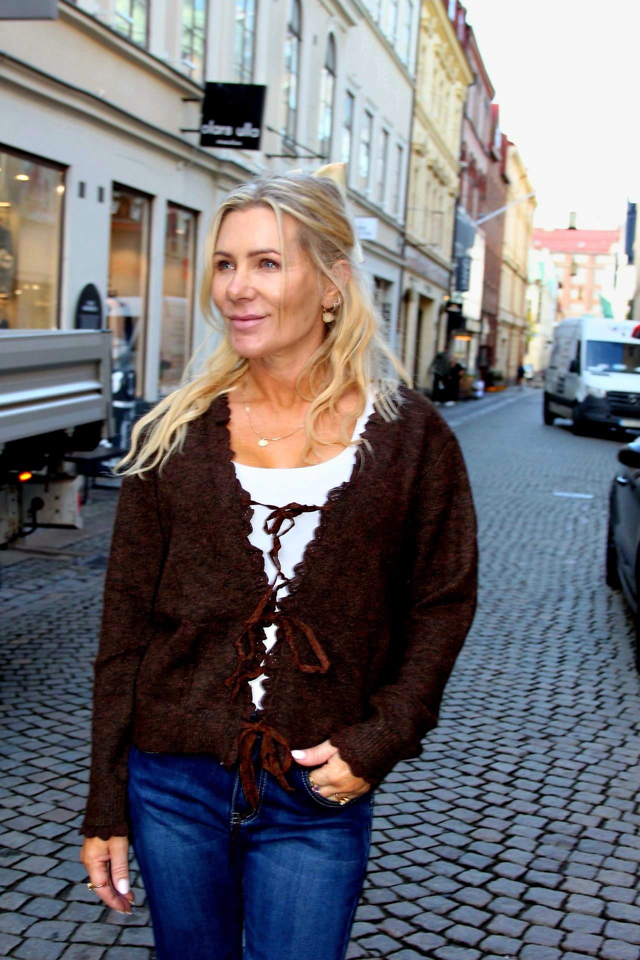 Superfin kofta med söt spetskant runt öppningen som stängs med rosettknyt!