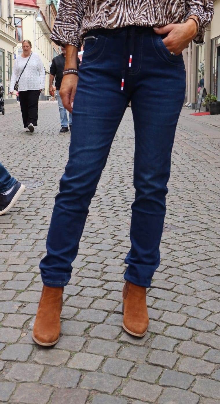 Mjuka och stretchiga jeans med resårmidja och dragsko!