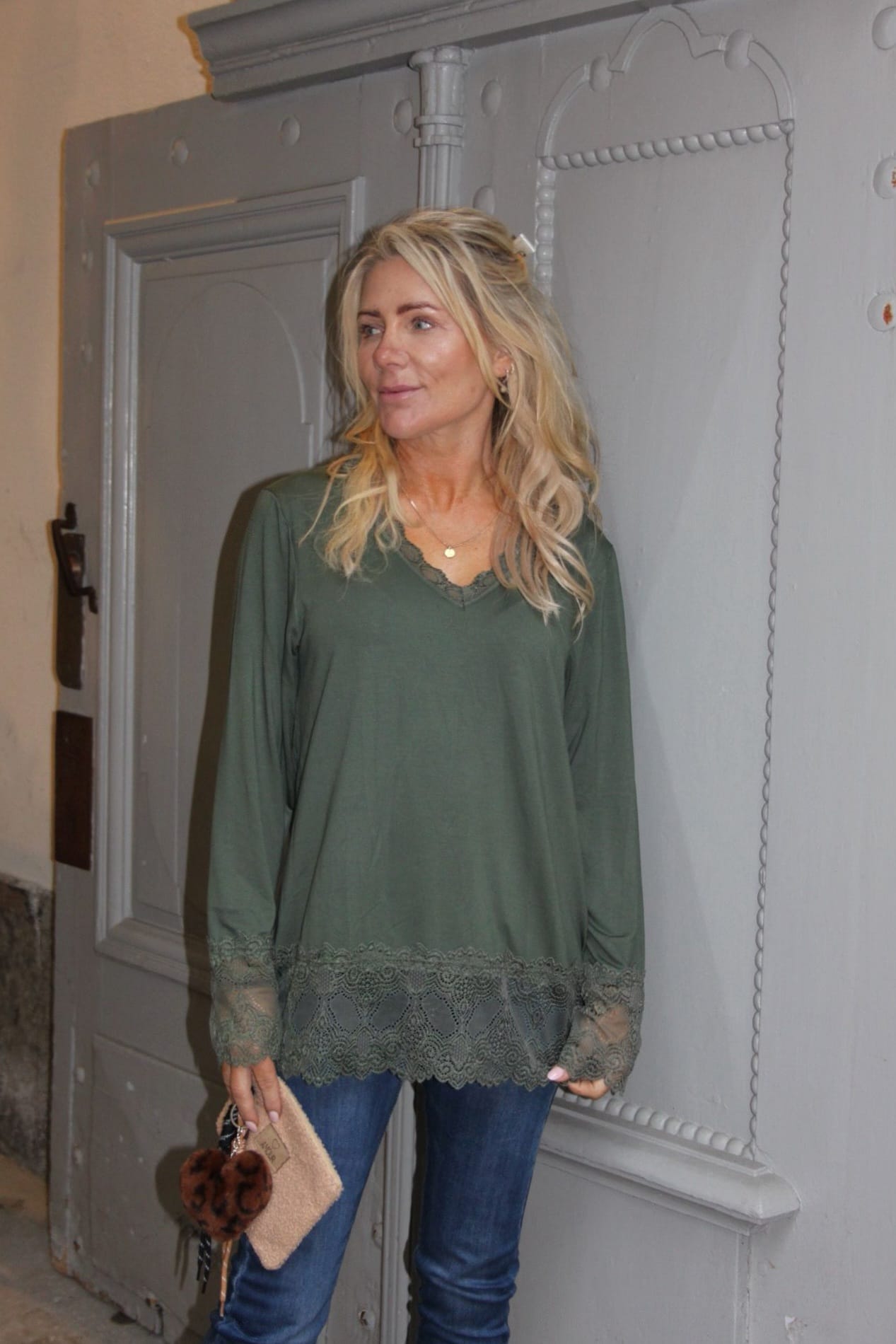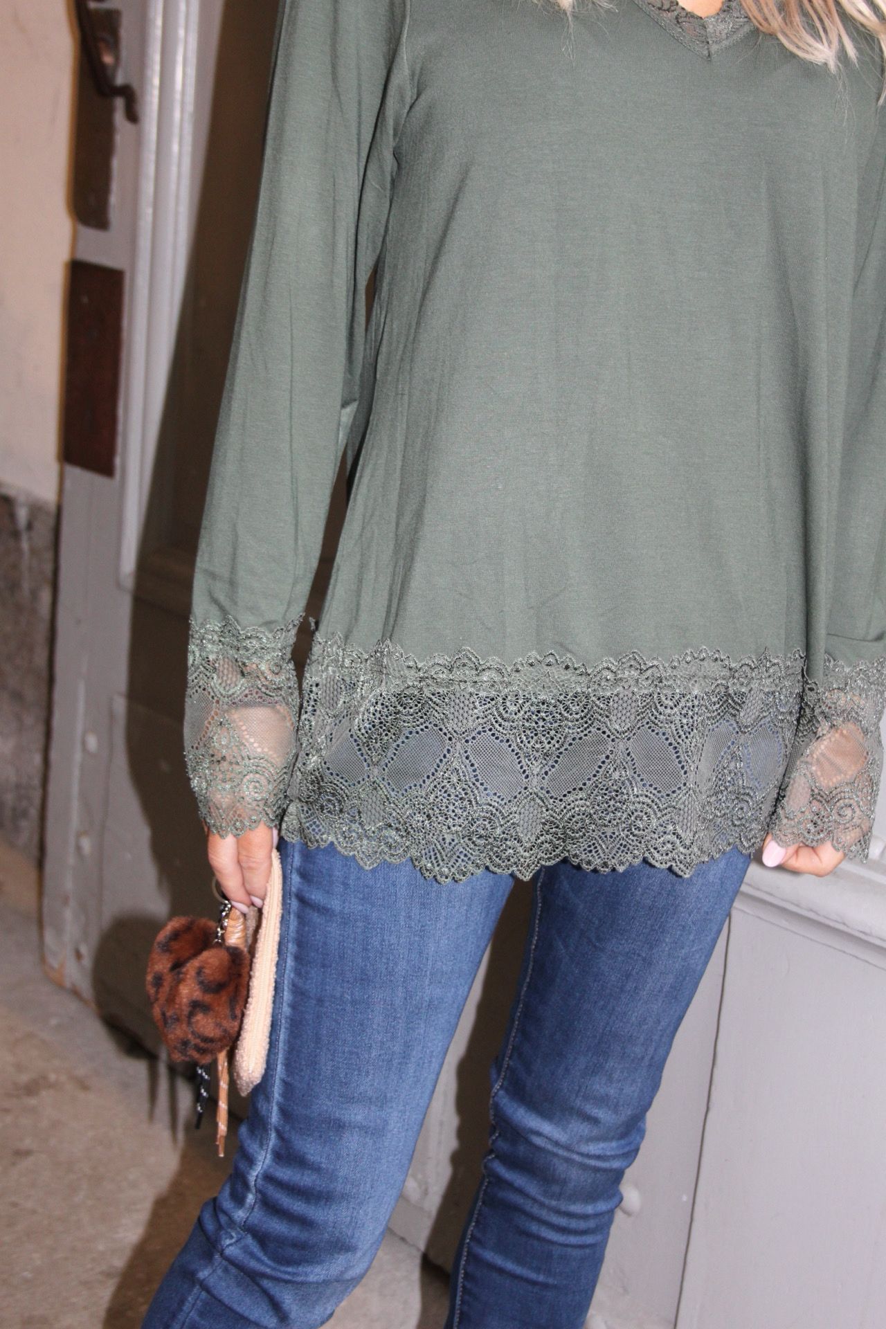 Fin stretchig långärmad tröja med spetskanter runt hals och axlar!