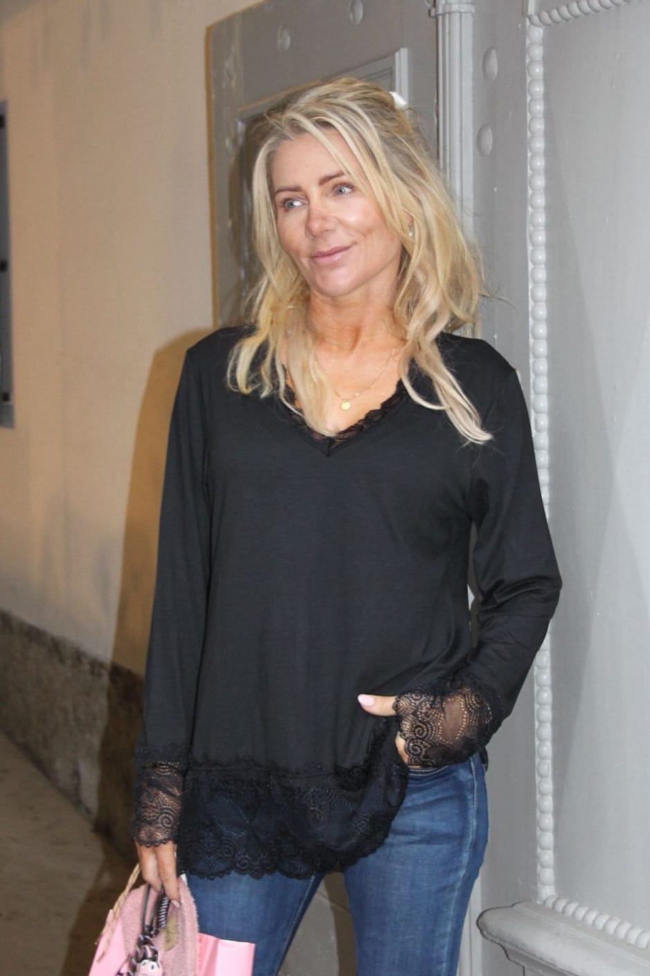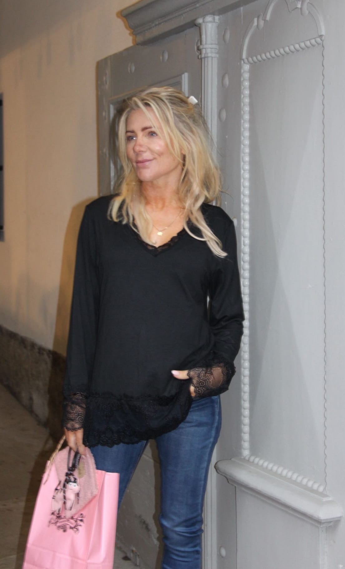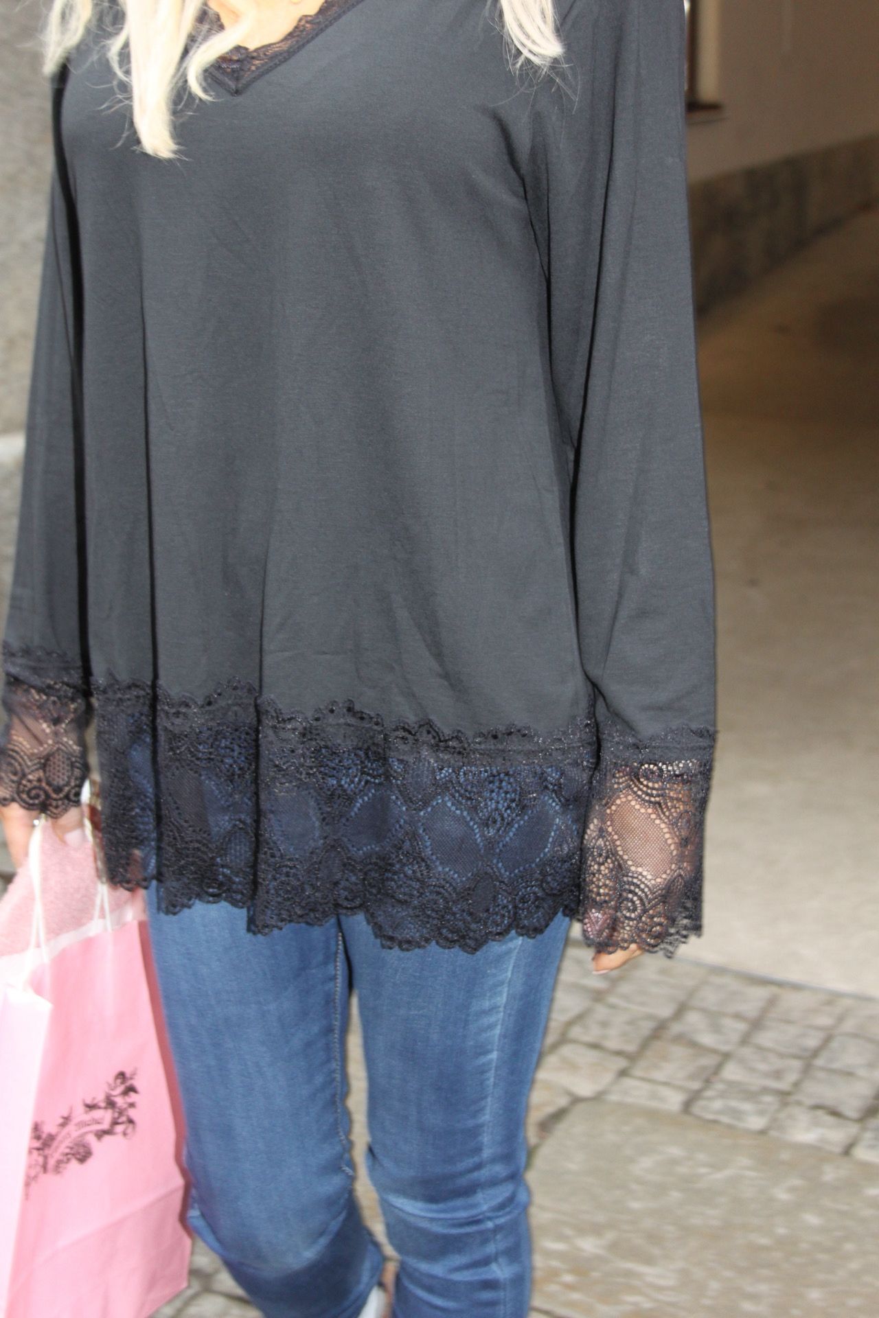 Fin stretchig långärmad tröja med spetskanter runt hals och axlar!