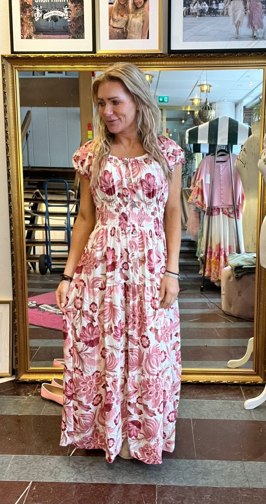 Meja – Långklänning med blomster – 302-B9 – Rosa