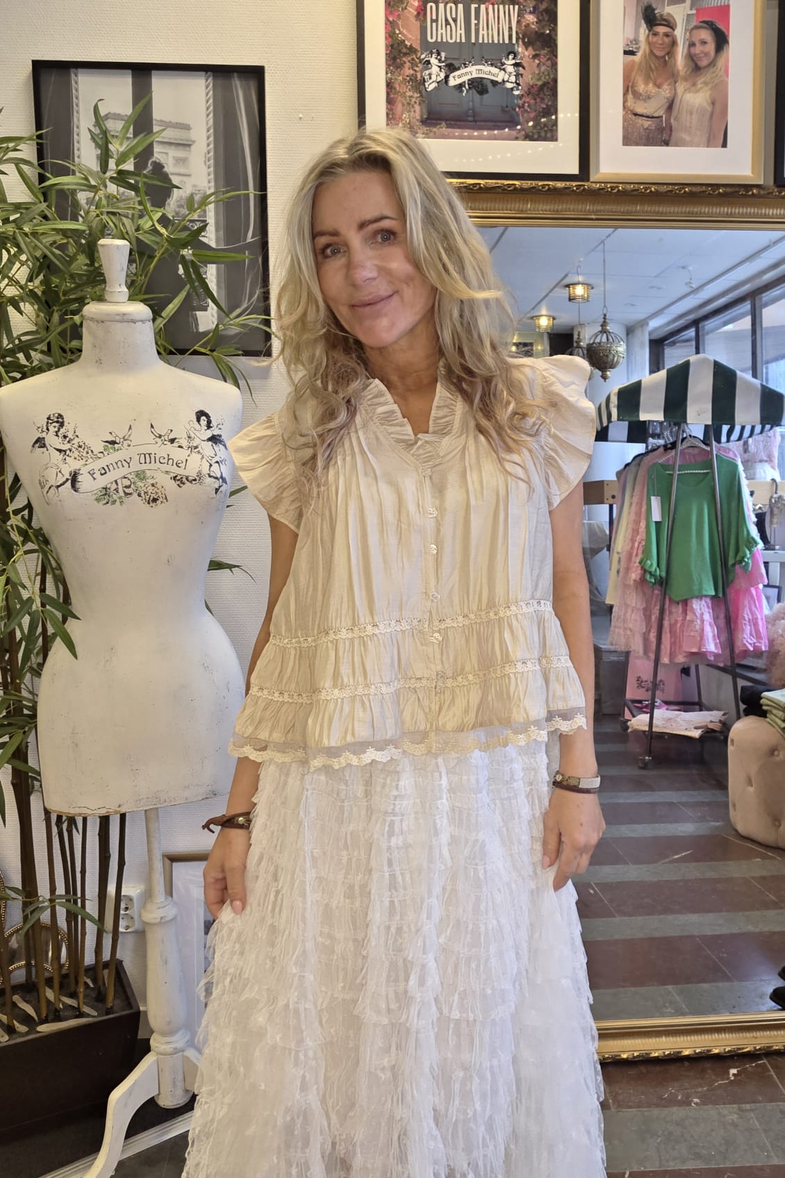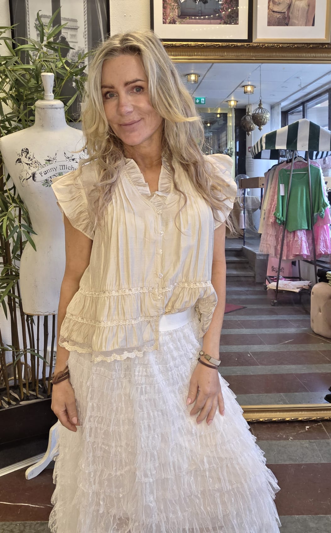 Miranda – Tenceltopp med volangärm och spetsdetaljer – Beige