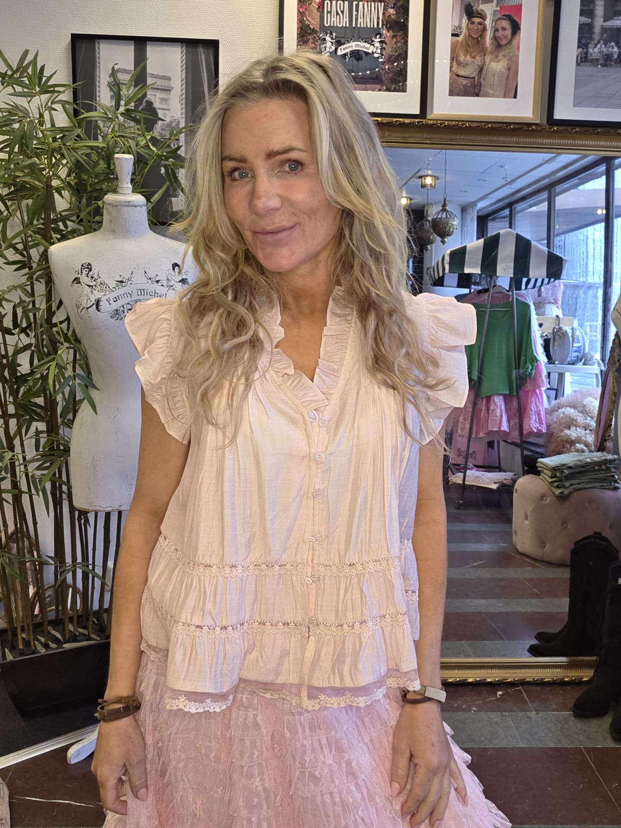 Miranda – Tenceltopp med volangärm och spetsdetaljer – Rosa