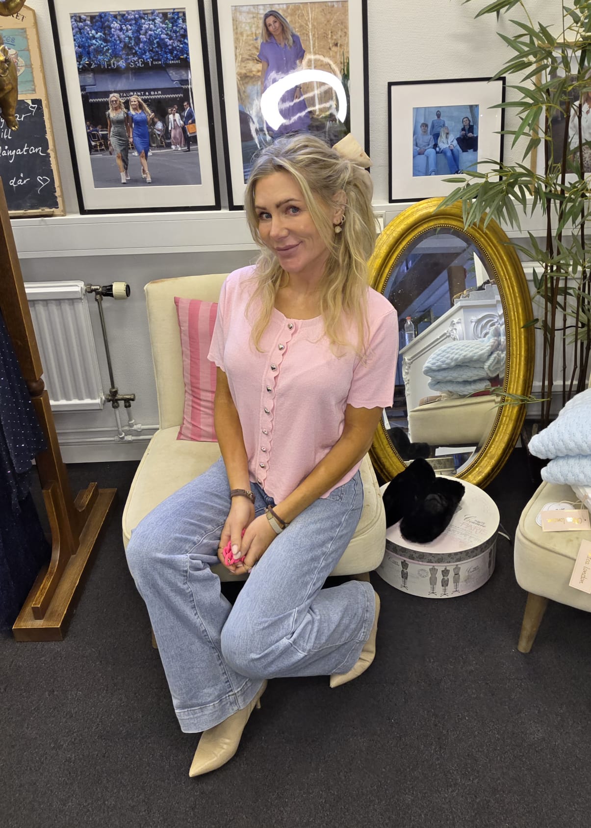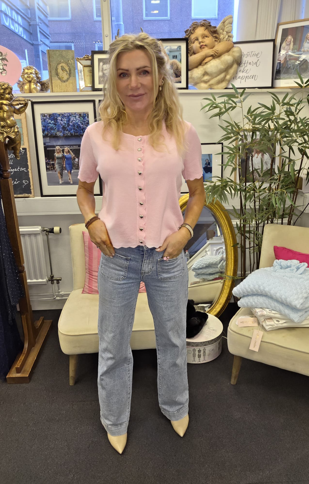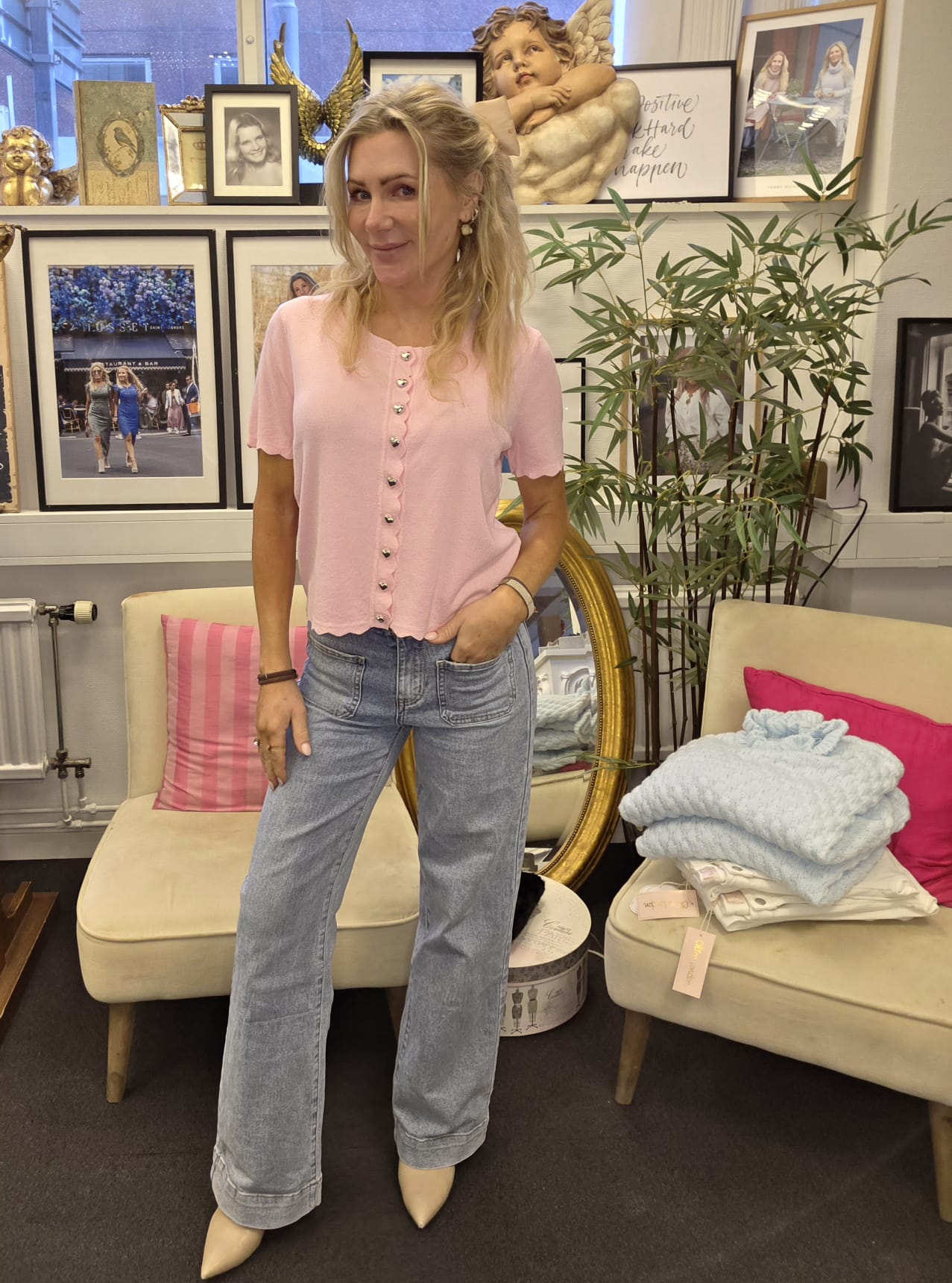Nova – Finstickad topp med hjärtknappar – Rosa
