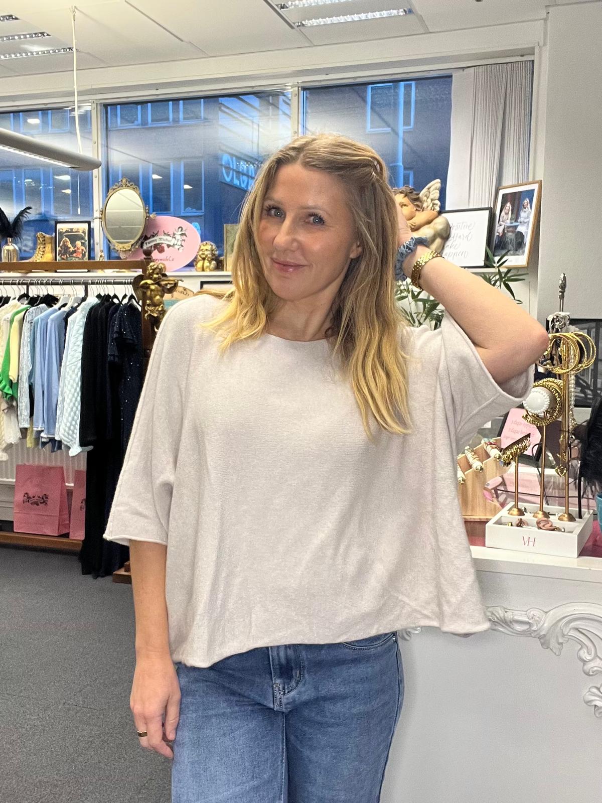 Boxig tröja i stickat material! Är kortärmad och är v-ringad.