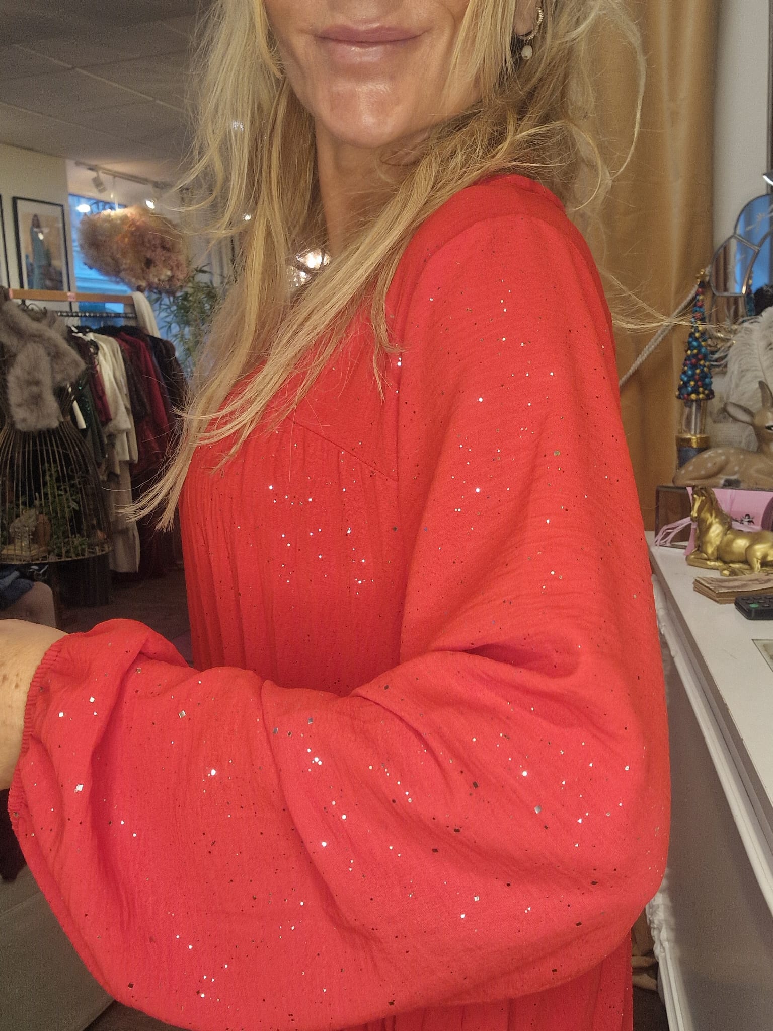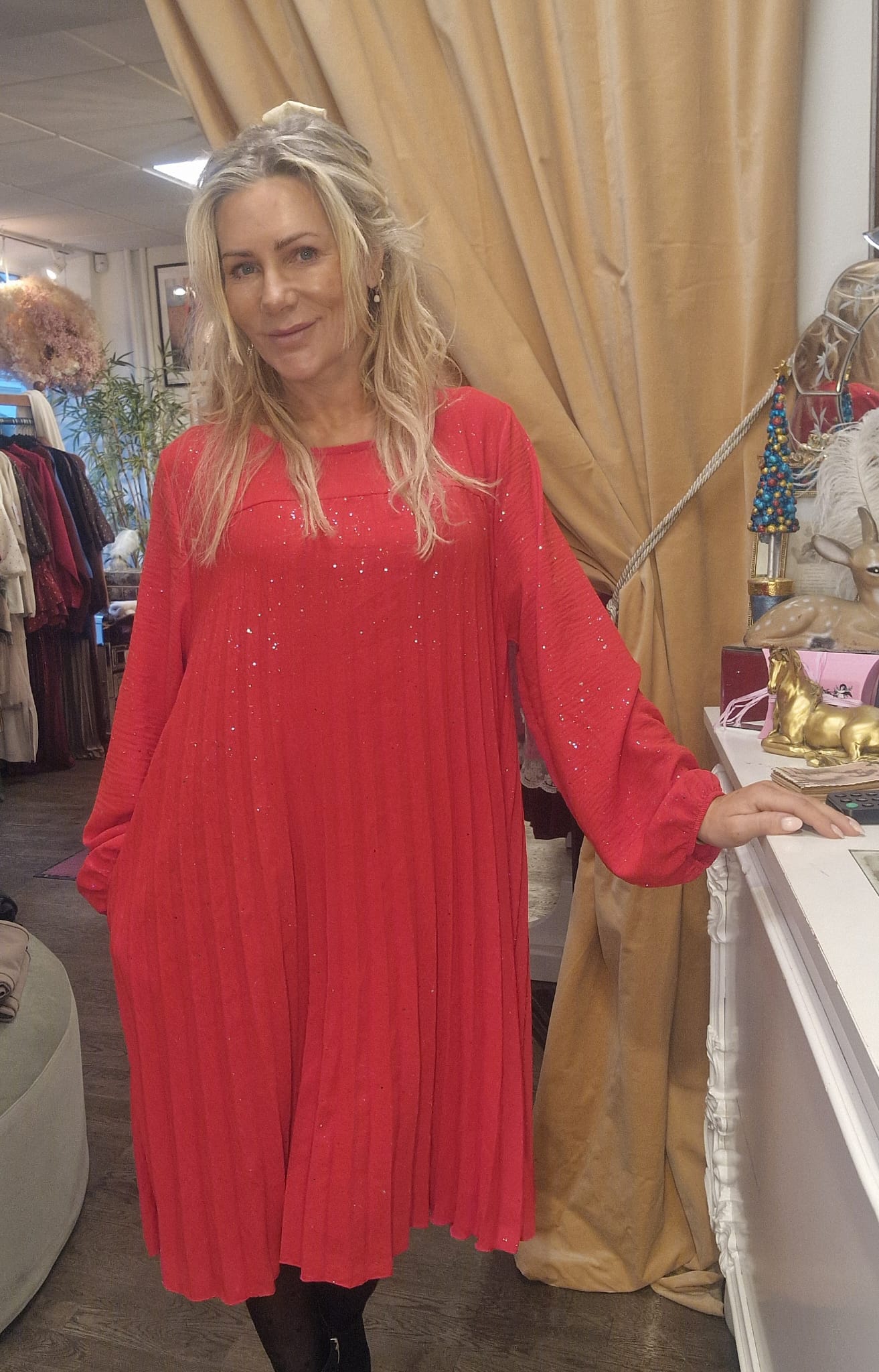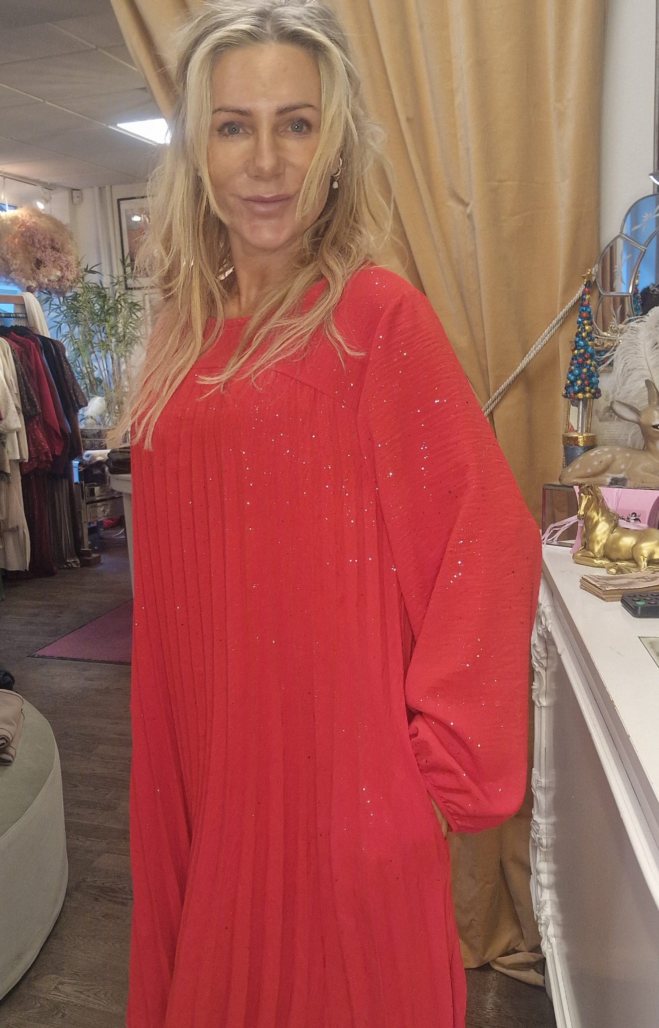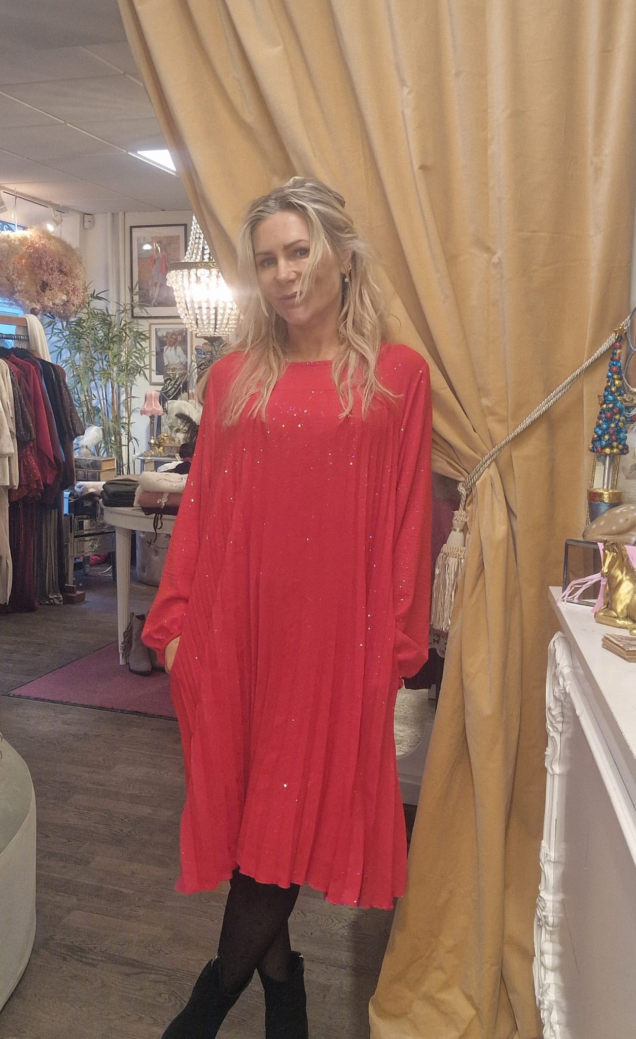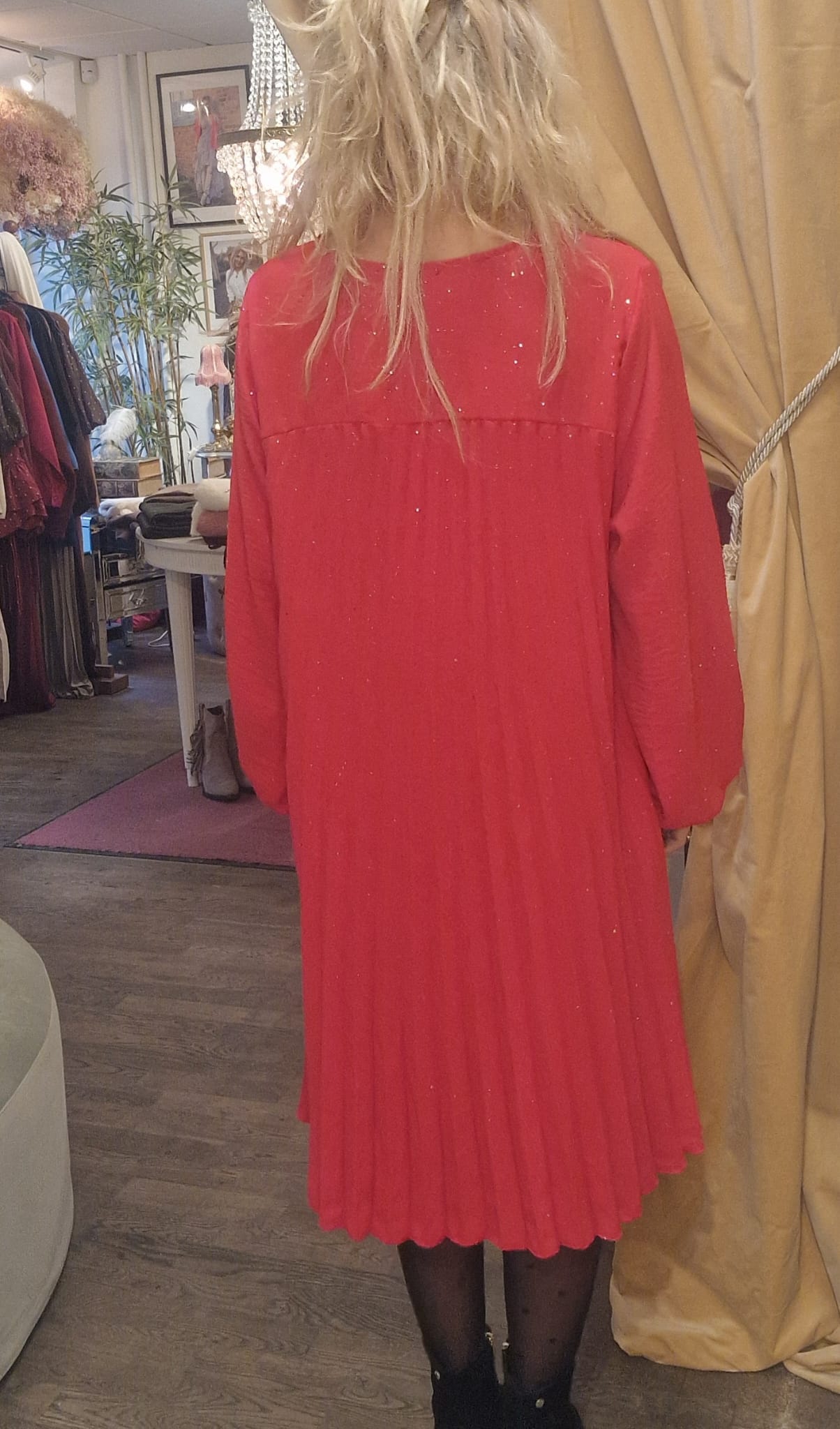 Lovelia – Plisserad klänning med lång ärm – Röd