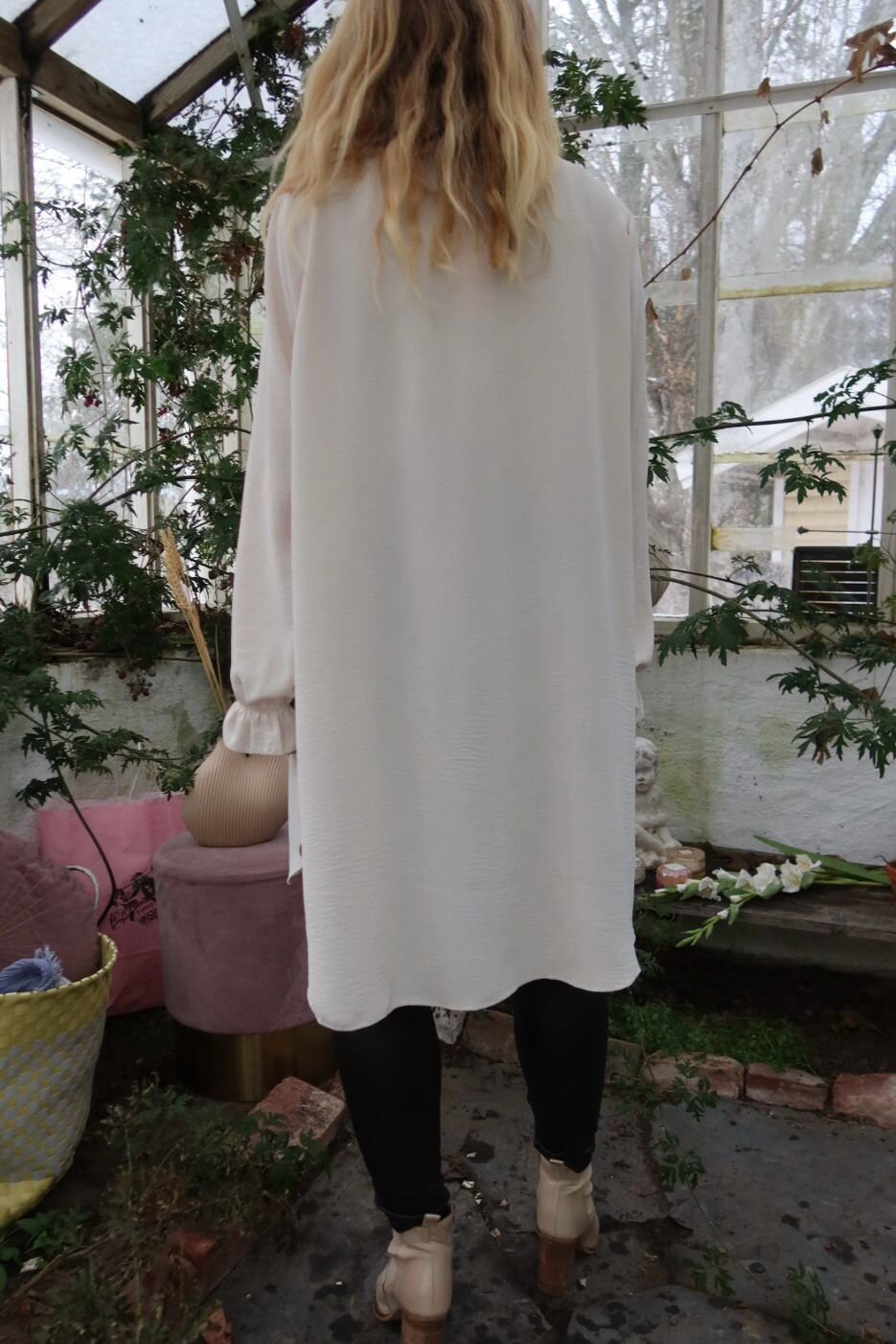Trevlig klänning/långskjorta med vackra volanger framtill!