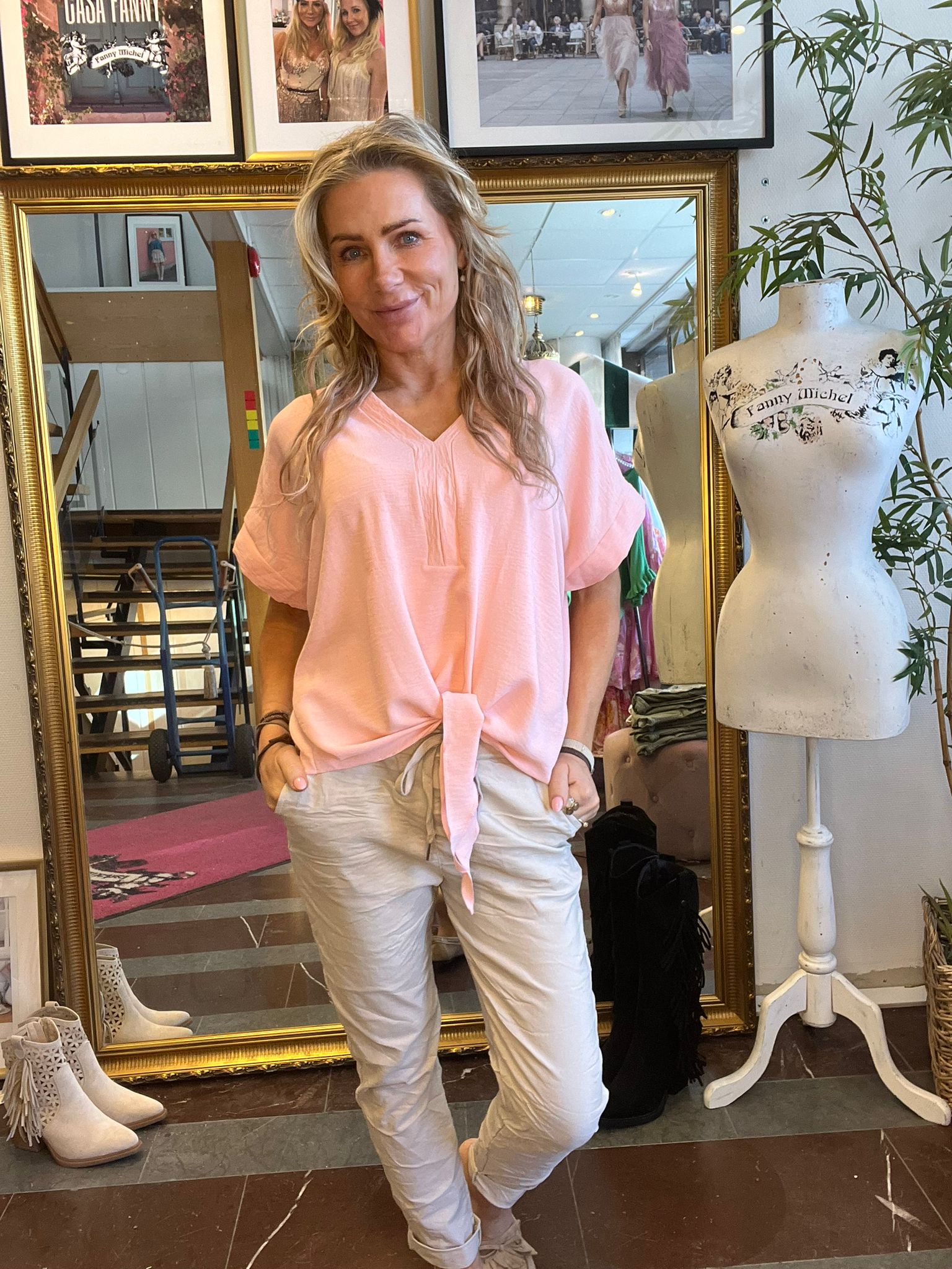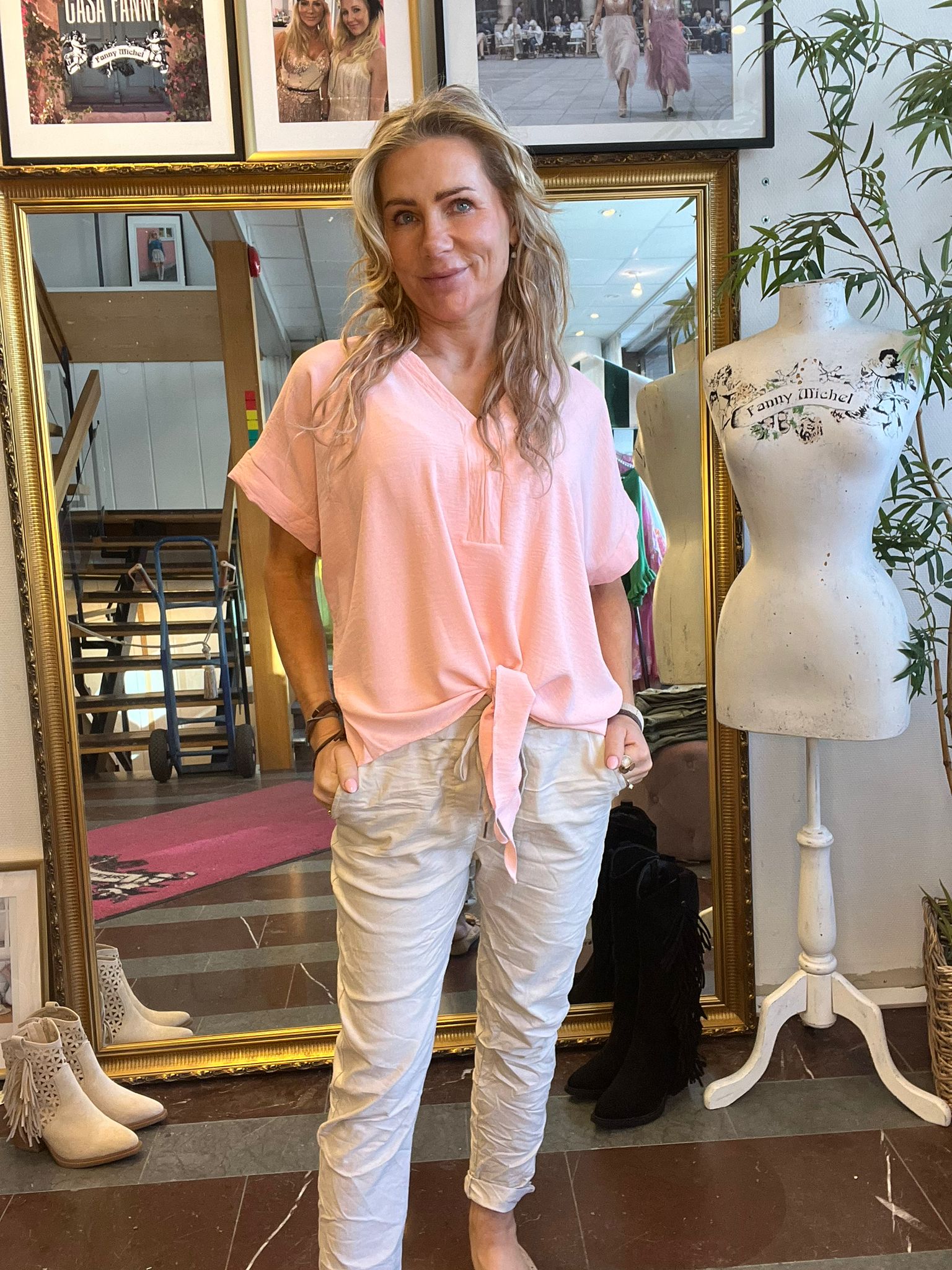 Snygg v-ringad topp i luftigt material med knyt fram !