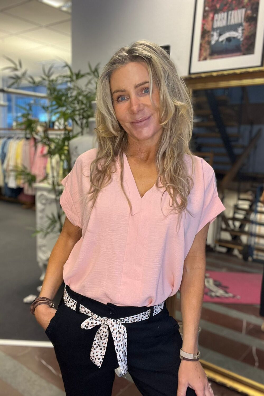 Snygg v-ringad topp i luftigt material med knyt fram !