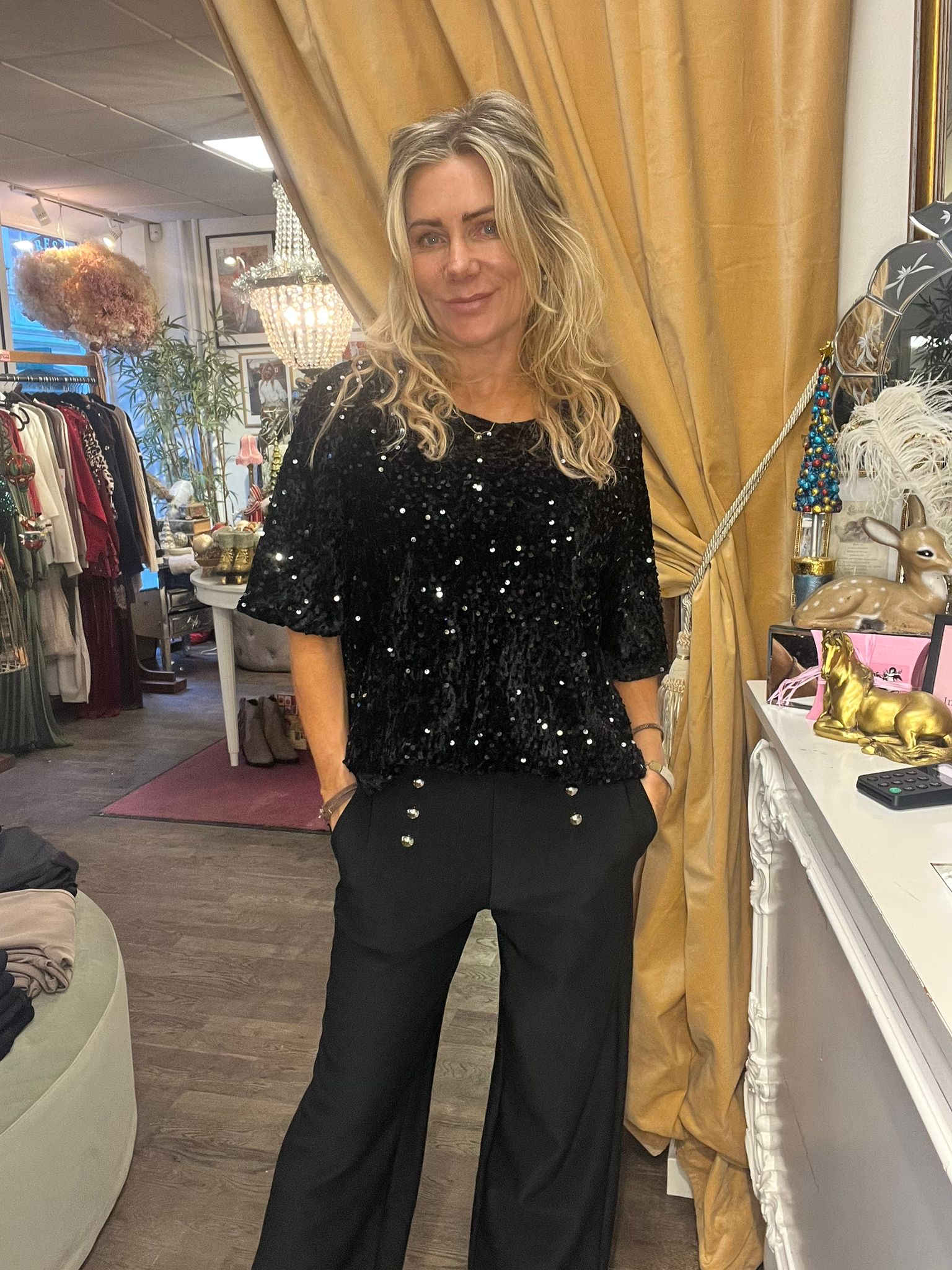 Byxorna har fickor fram samt en resårmidja utan knäppning! Dekorativa silverknappar på framsidan. Mått: S/M Midjemått: ca 68 cm Beninnerlängd: ca 77 cm. Midjehöjd, (Midja till gren.): ca 27 cm. M/L Midjemått: ca 72 cm Beninnerlängd: ca 79 cm. Midjehöjd, (Midja till gren.): ca 27 cm. L/XL Midjemått: ca 74 cm Beninnerlängd: ca 80 cm. Midjehöjd, (Midja till gren.): ca 29 cm. XL/XXL Midjemått: ca 76 cm Beninnerlängd: ca 80 cm. Midjehöjd, (Midja till gren.): ca 30 cm.————————————————————————