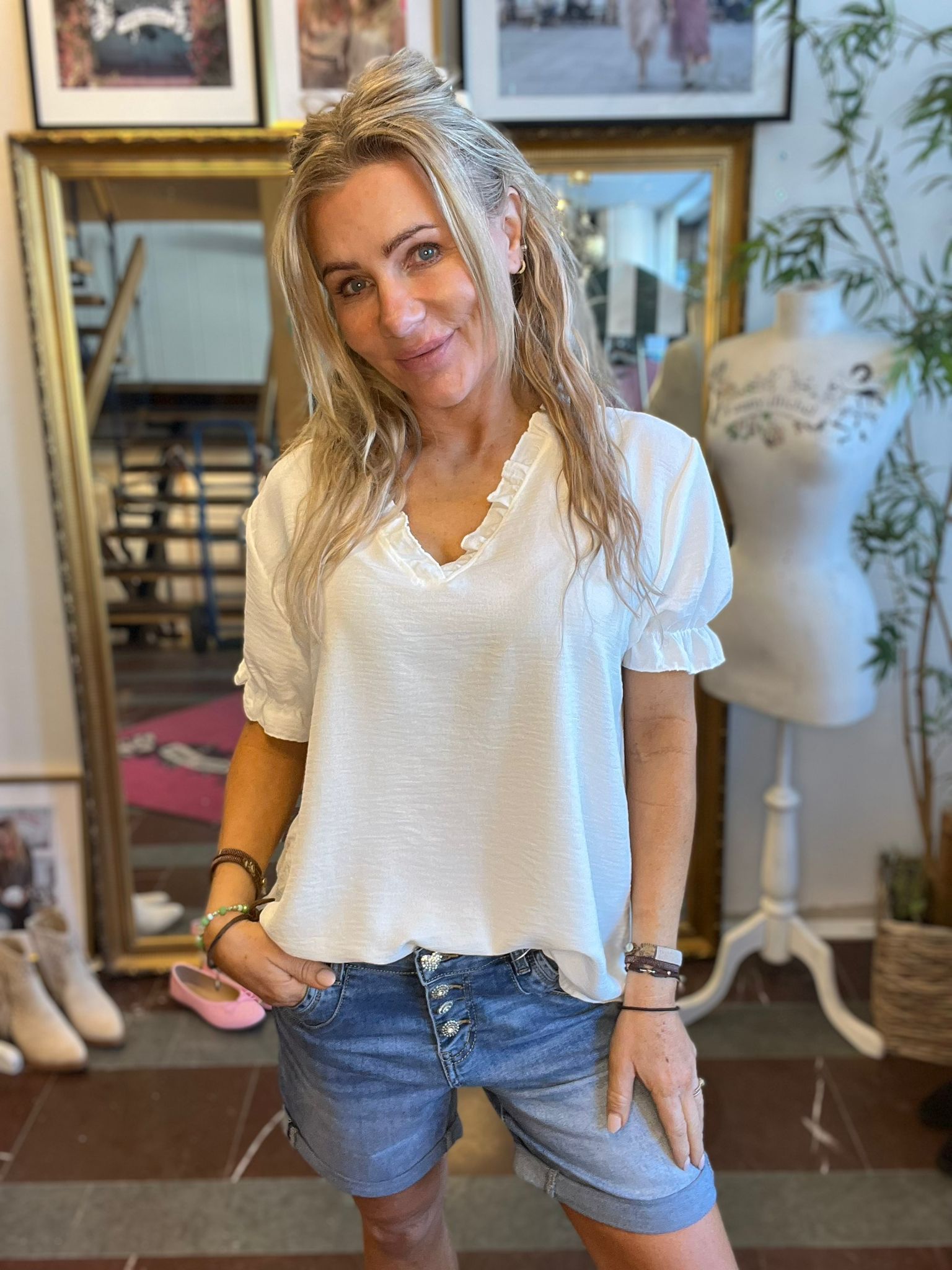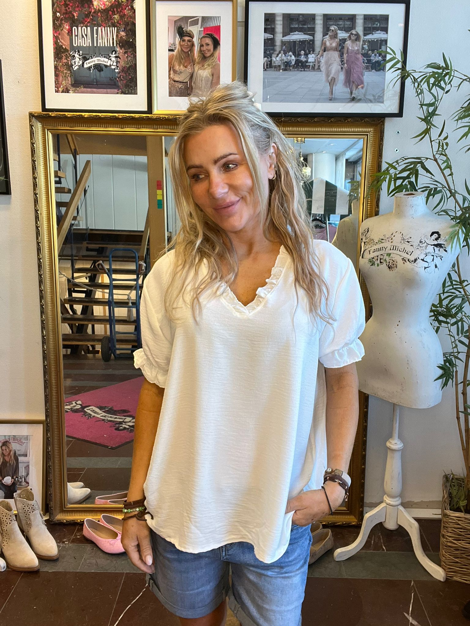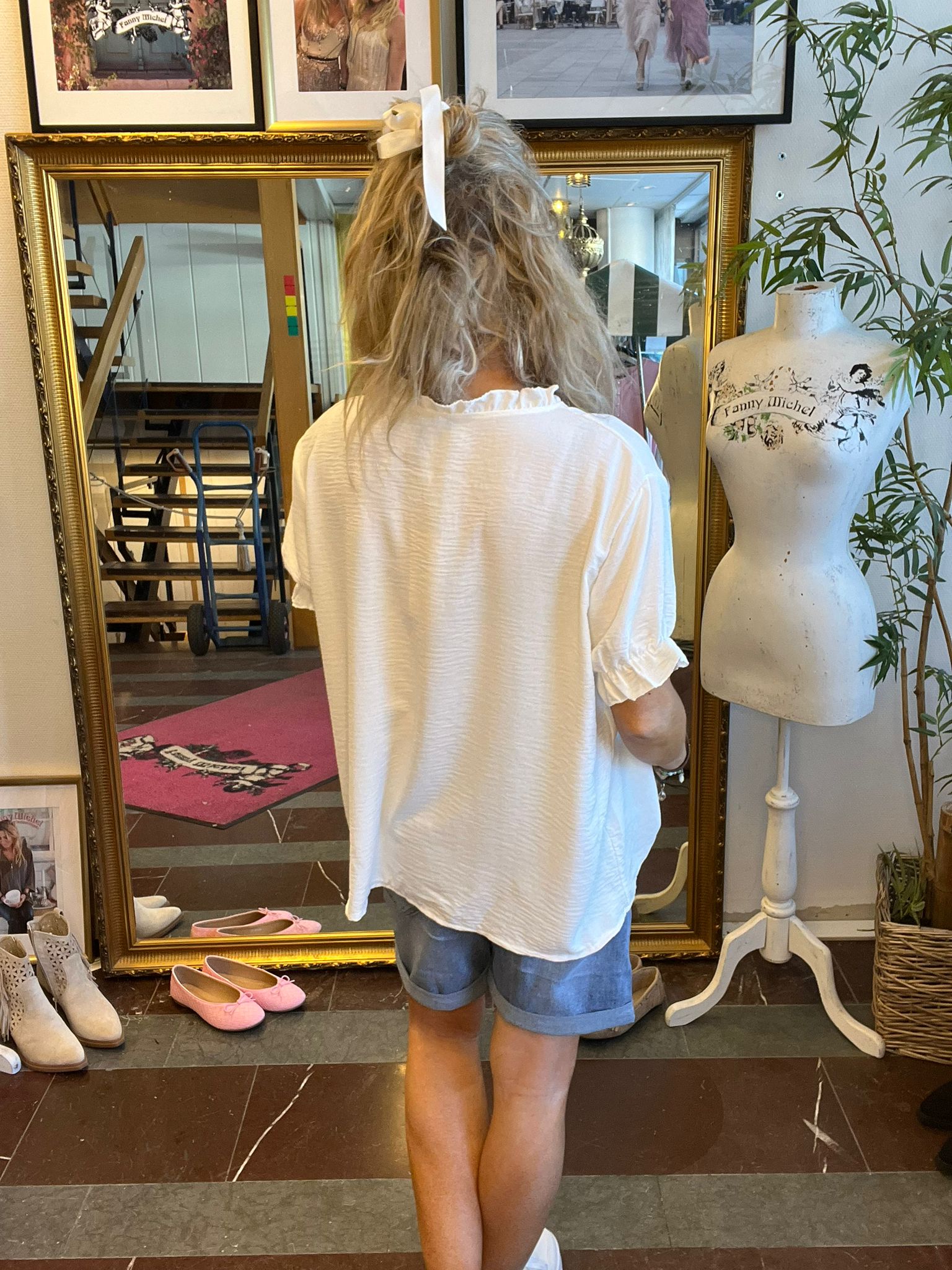 Snygg kortärmad blus med resår på ärmen som en härlig detalj!