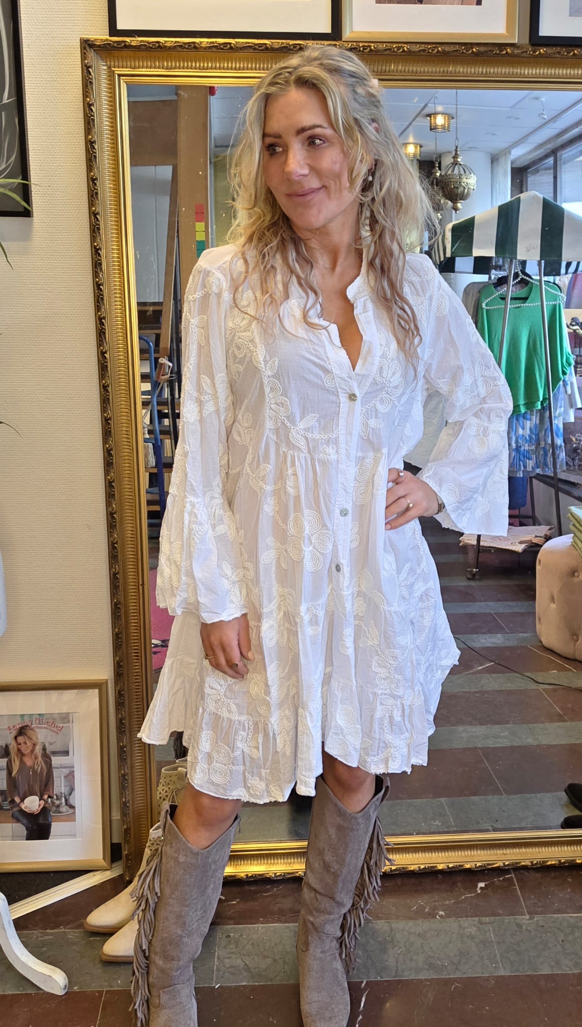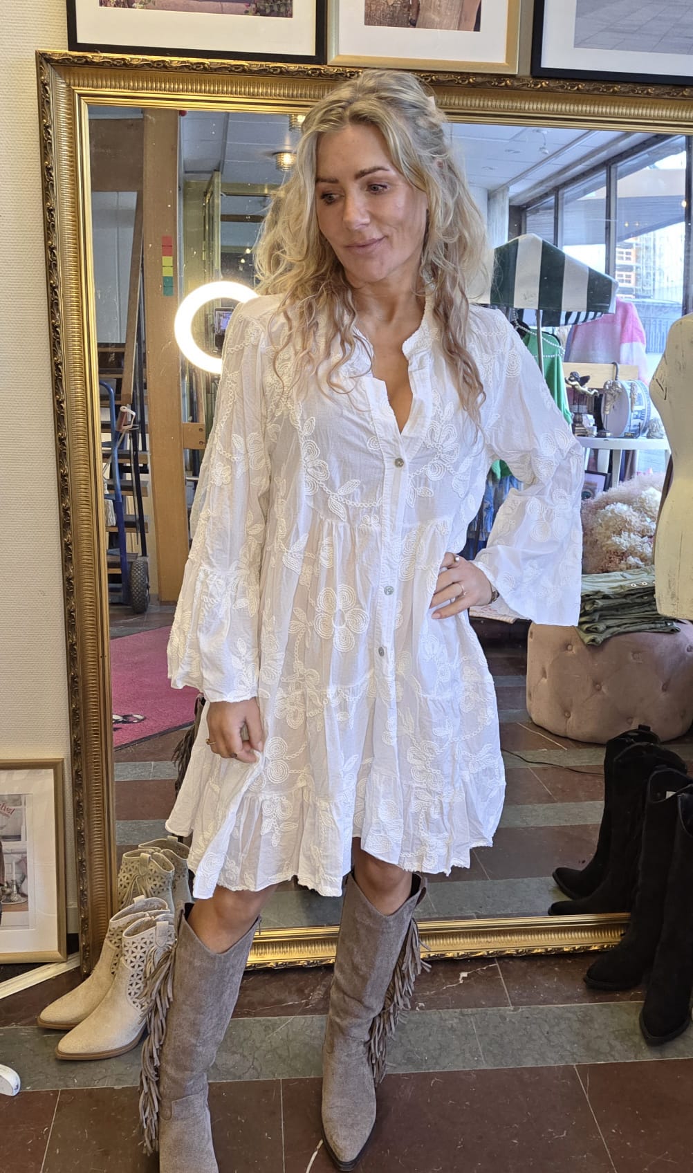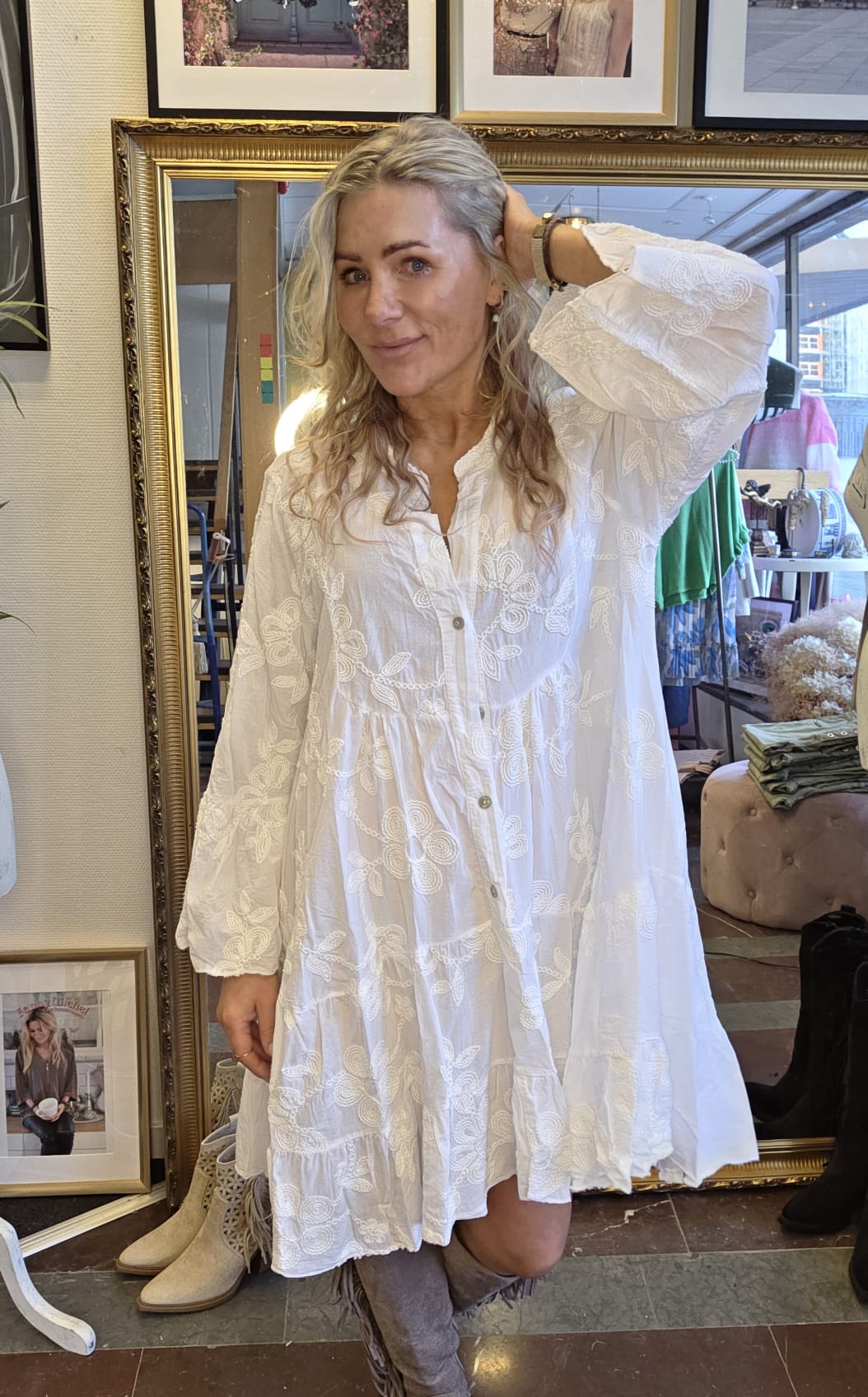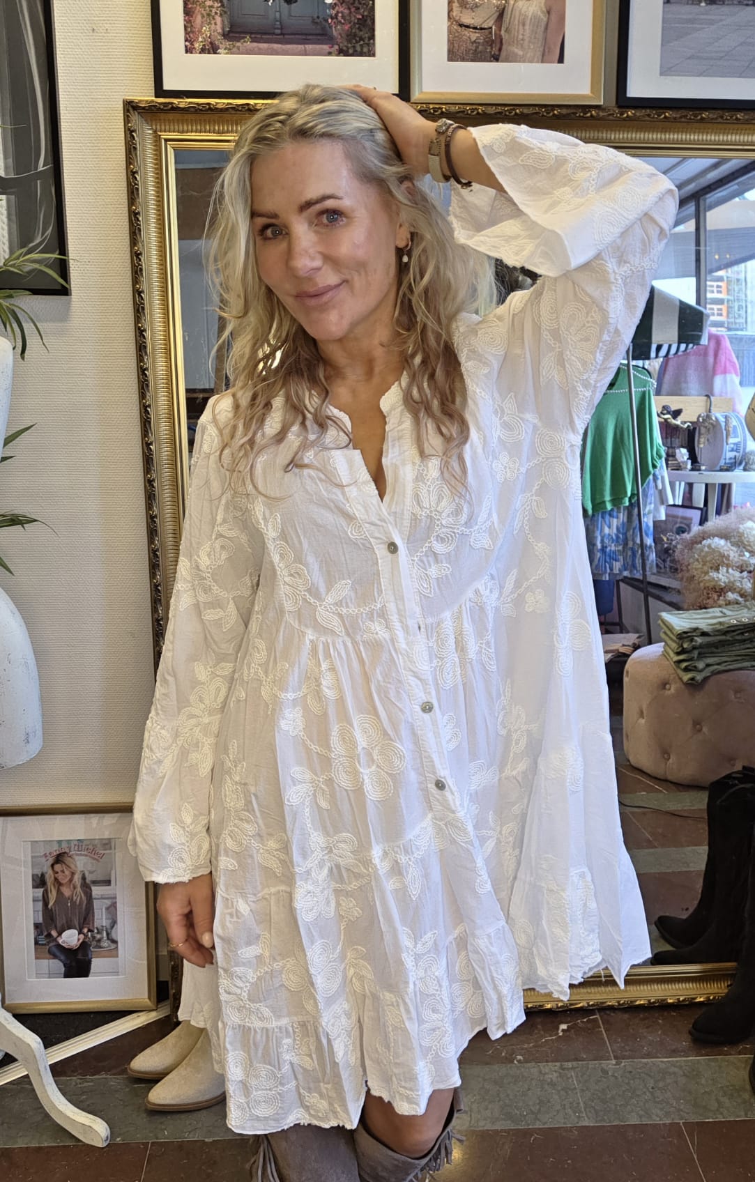 Therese – Bomullsklänning med brodyr – Vit