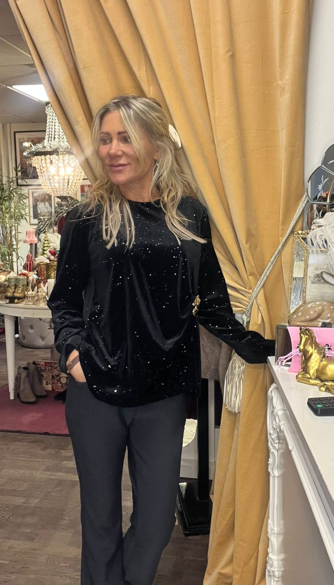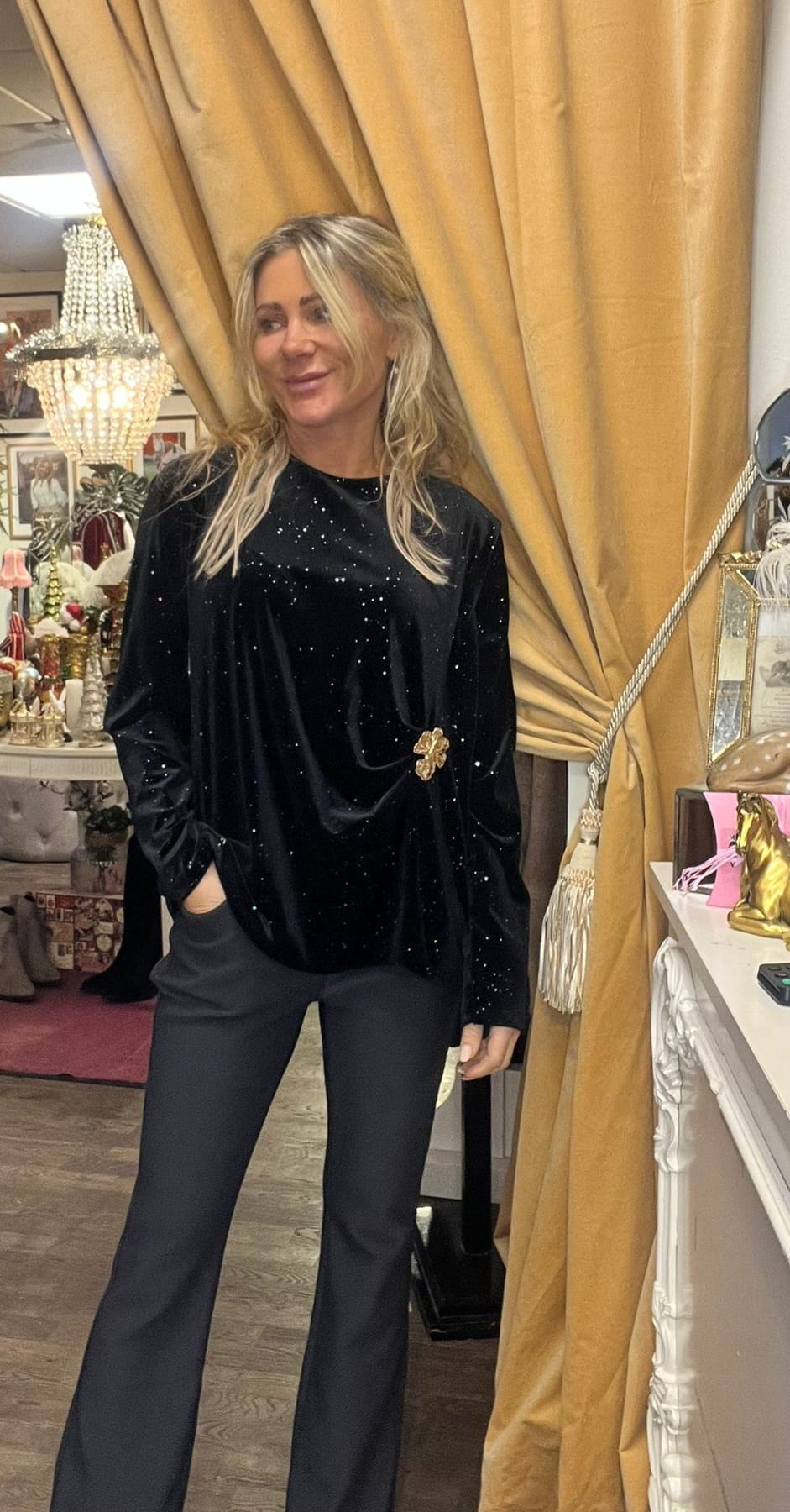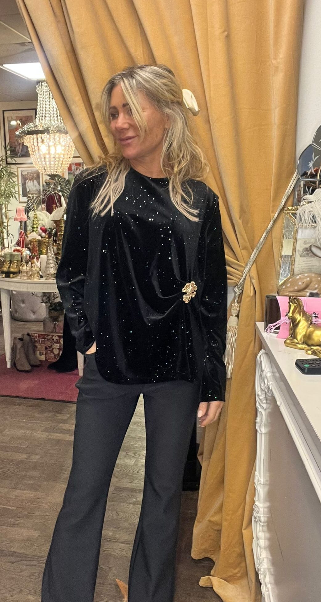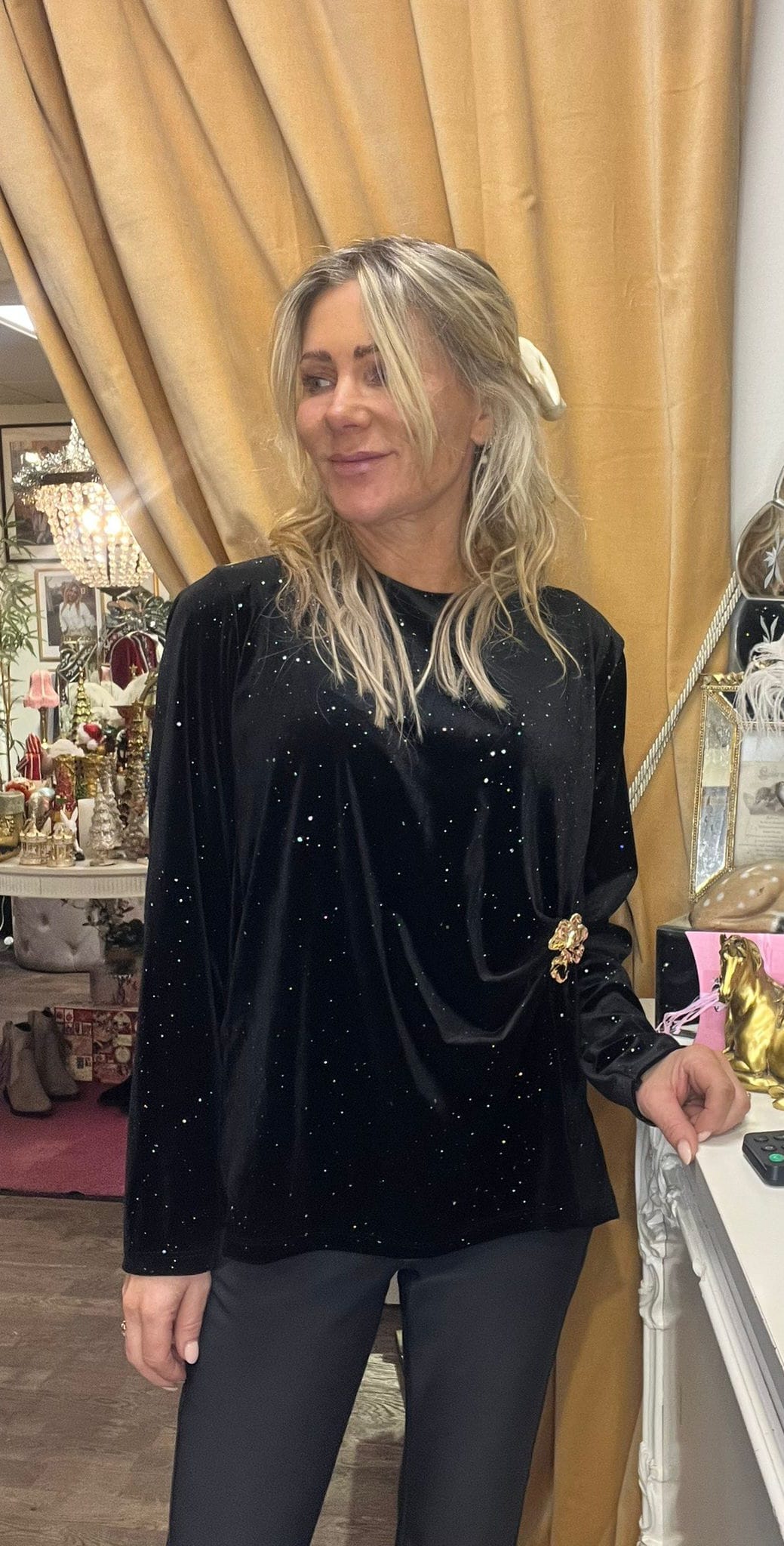 Vendela – Sammetstunika med bling och gulddetalj – Svart