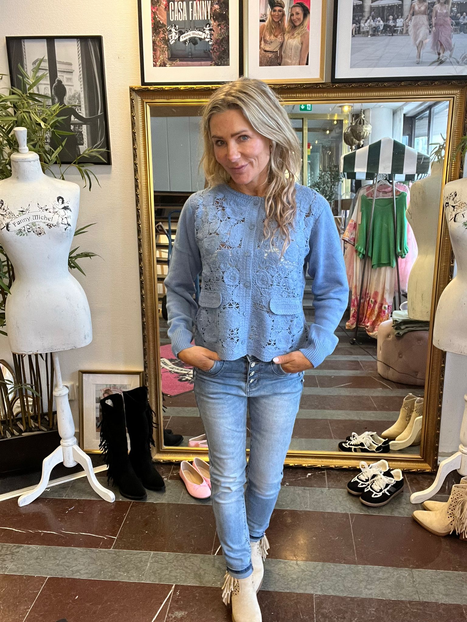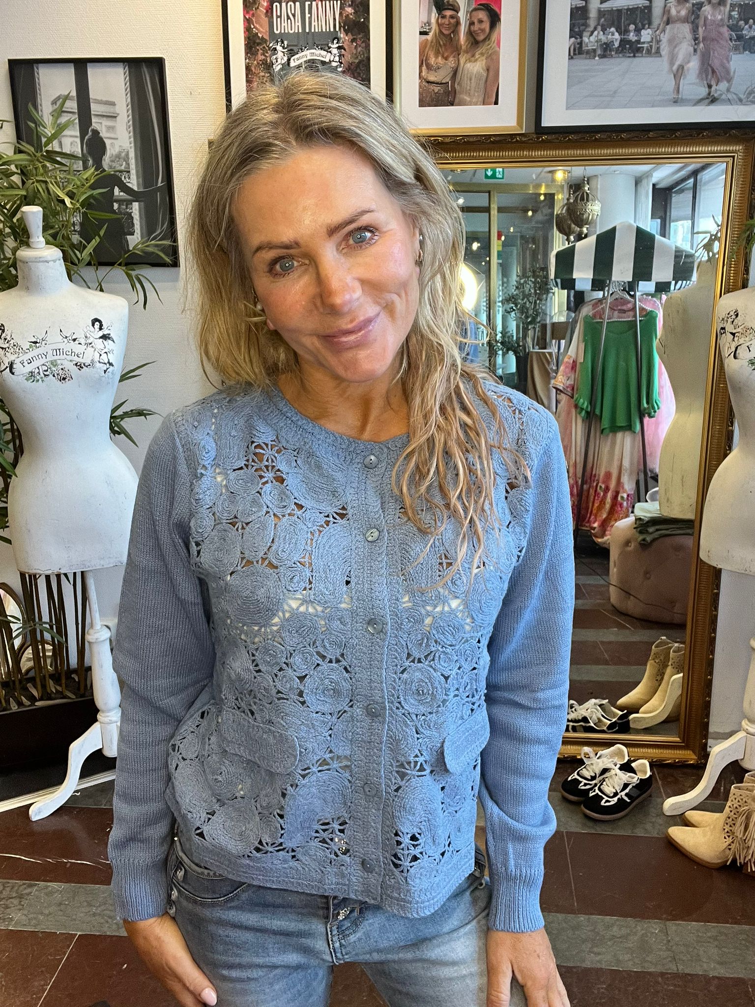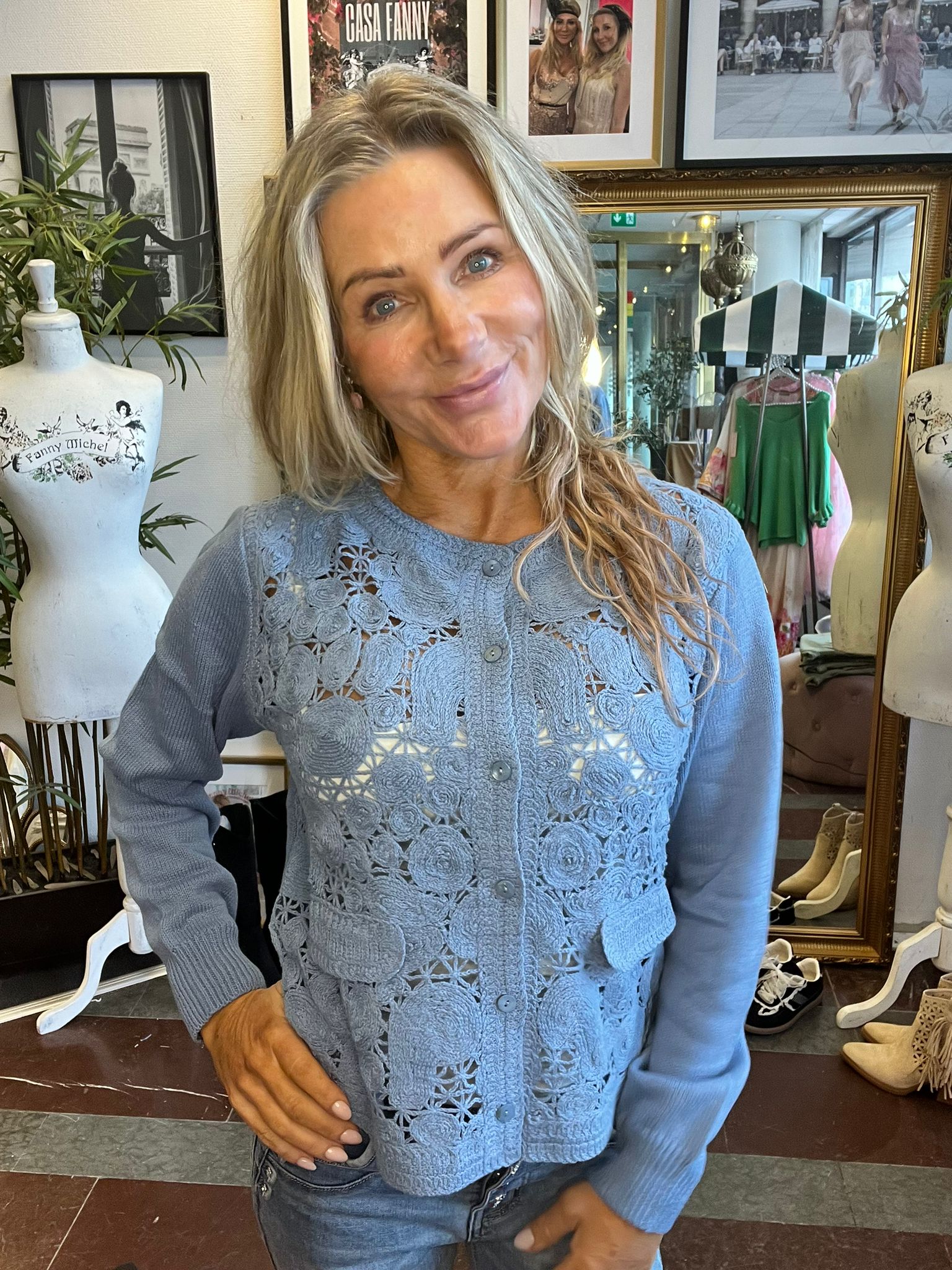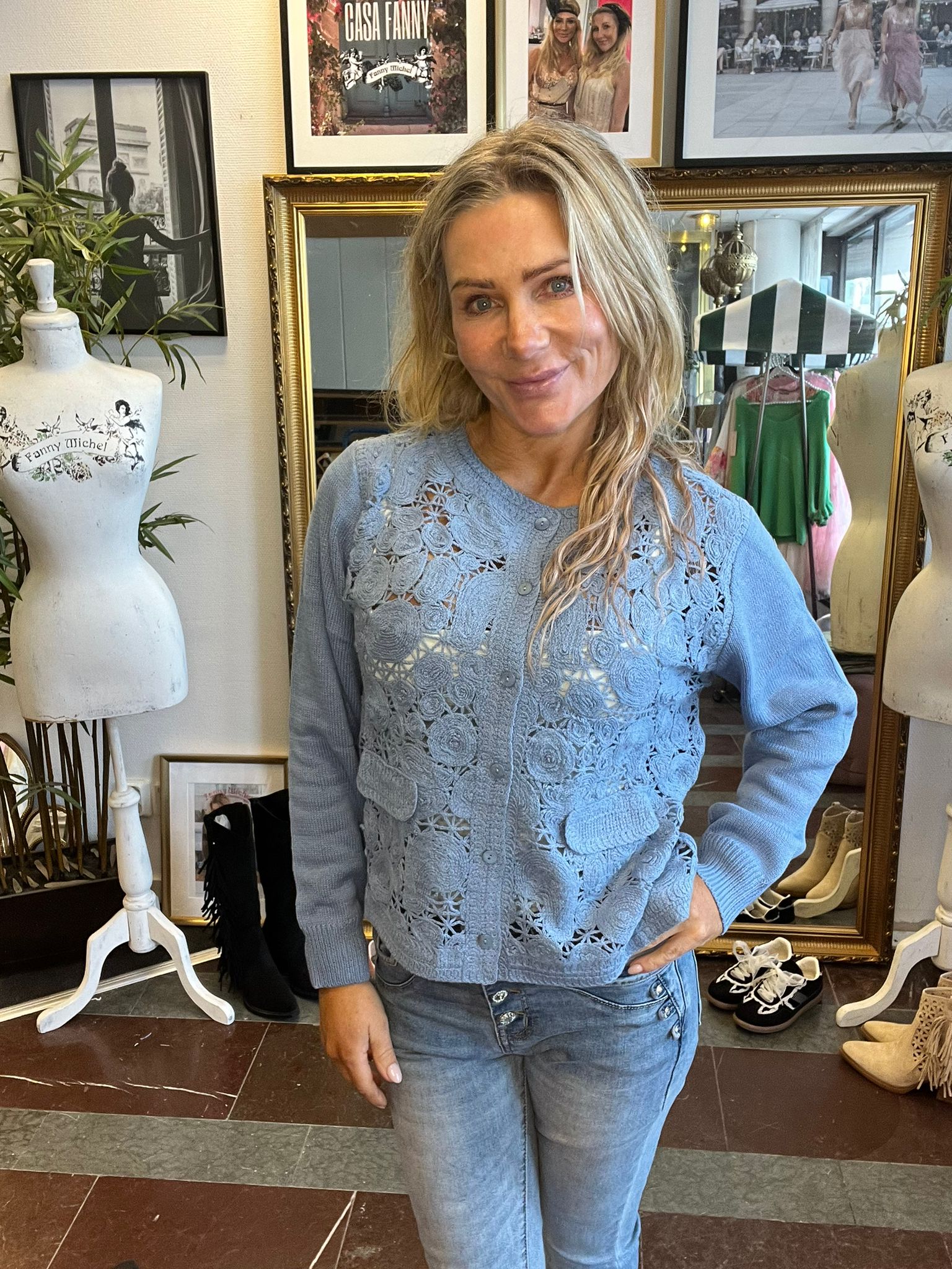 Vivi – Virkad kofta – Blå