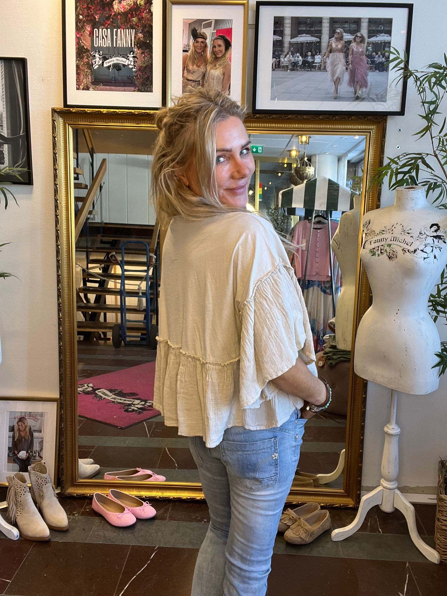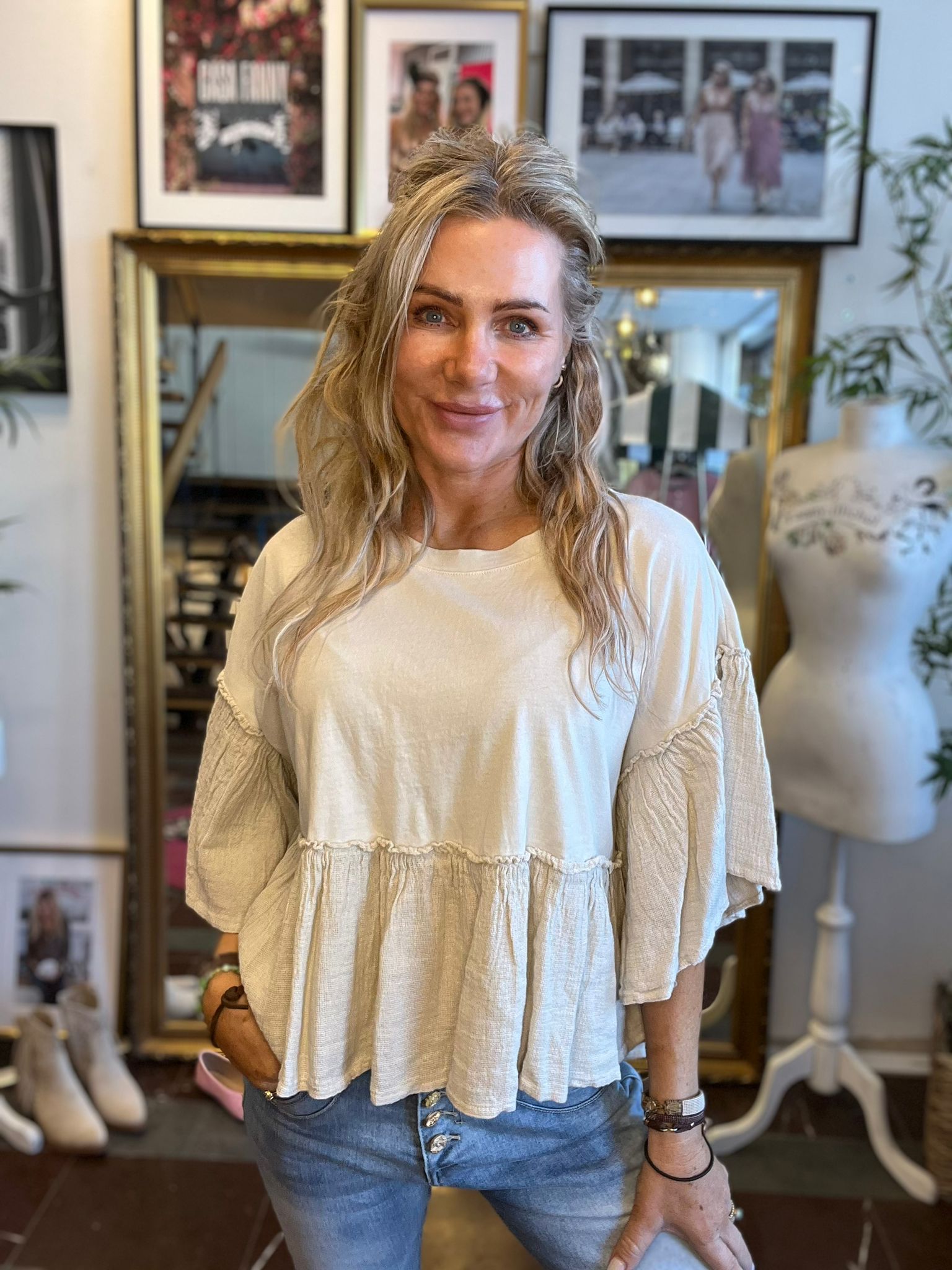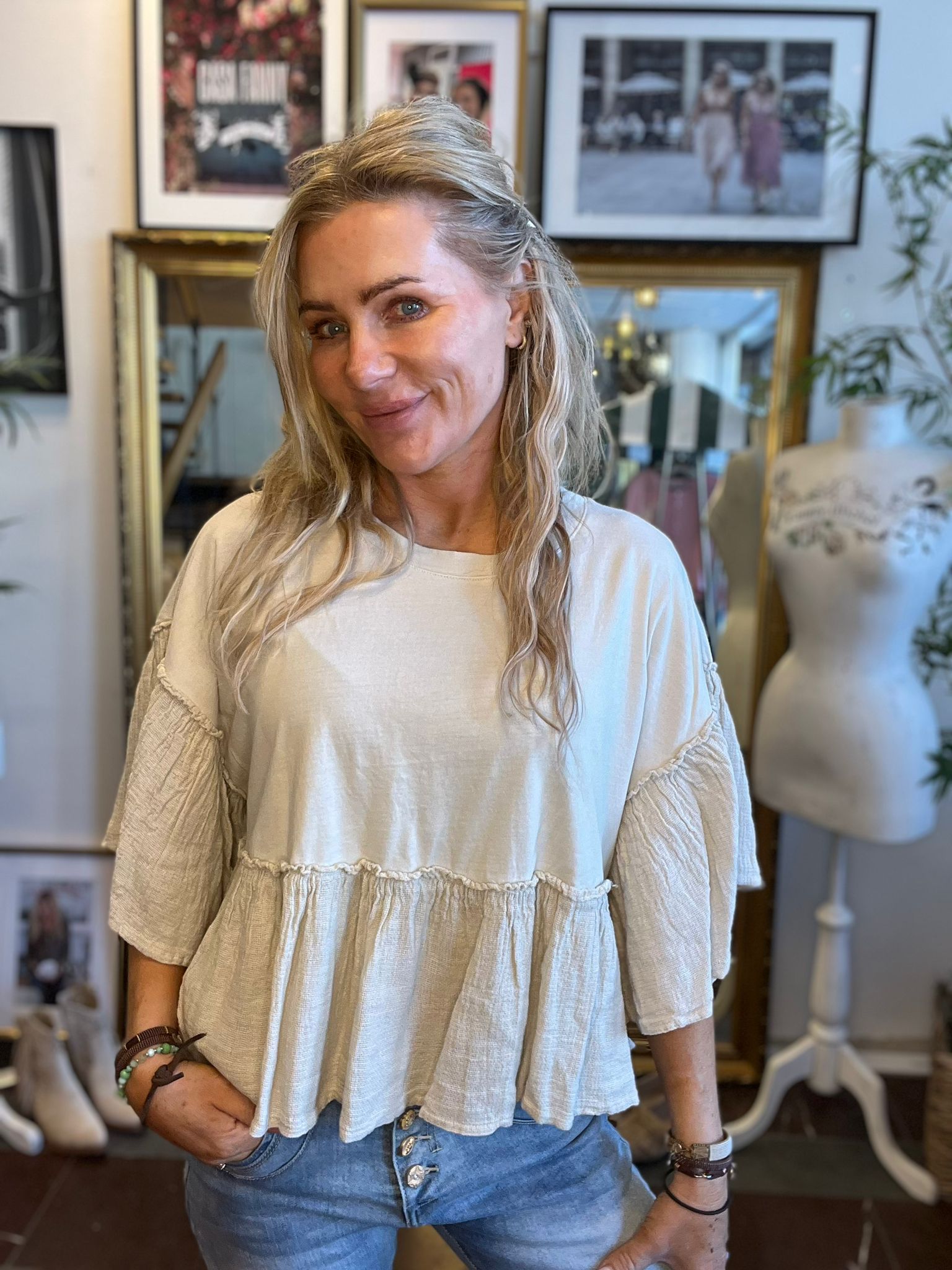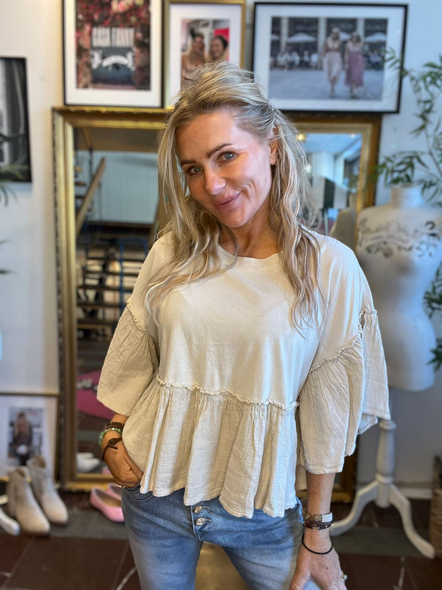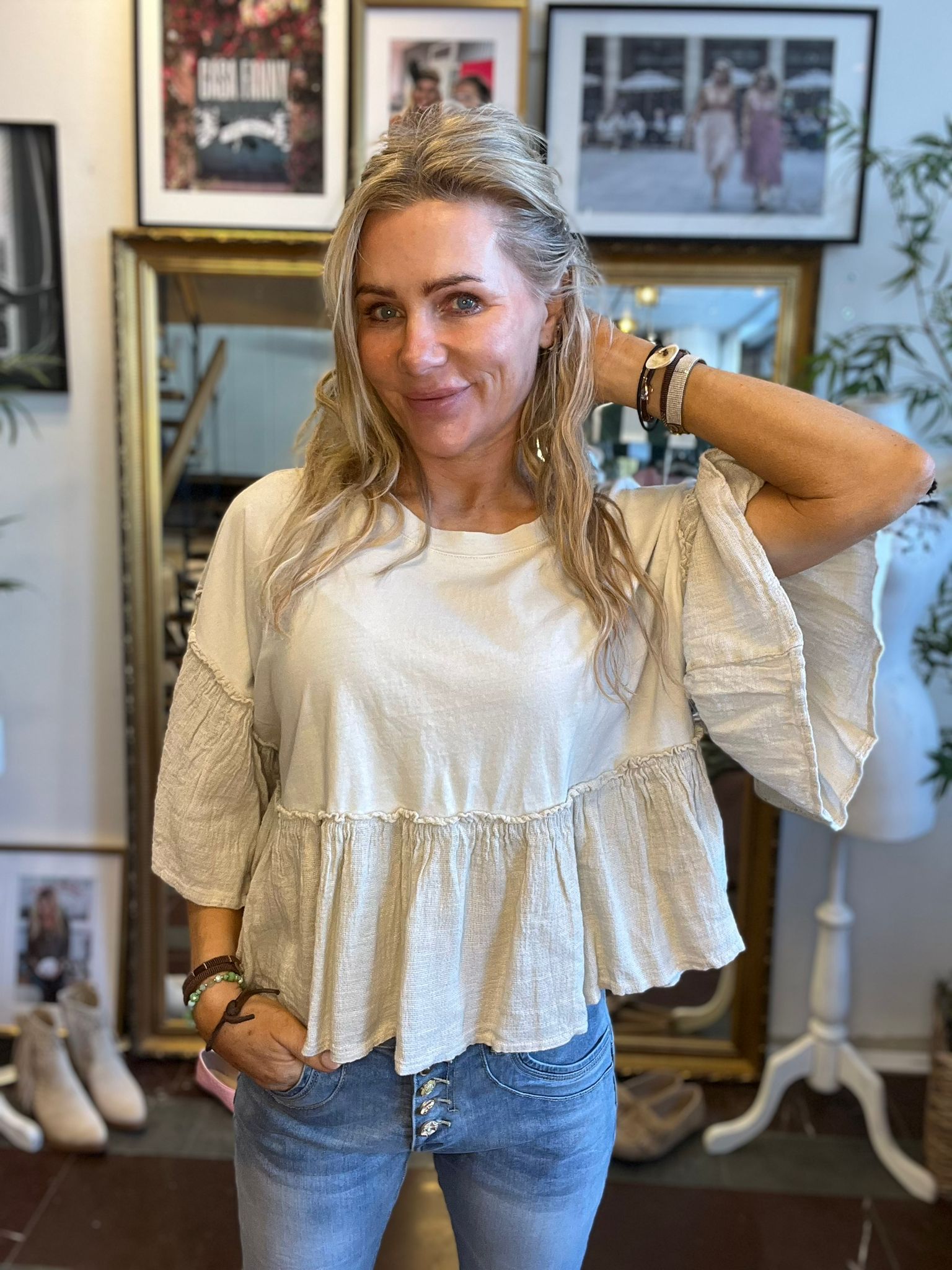 Zoe – Bomullstopp med volanger – Beige